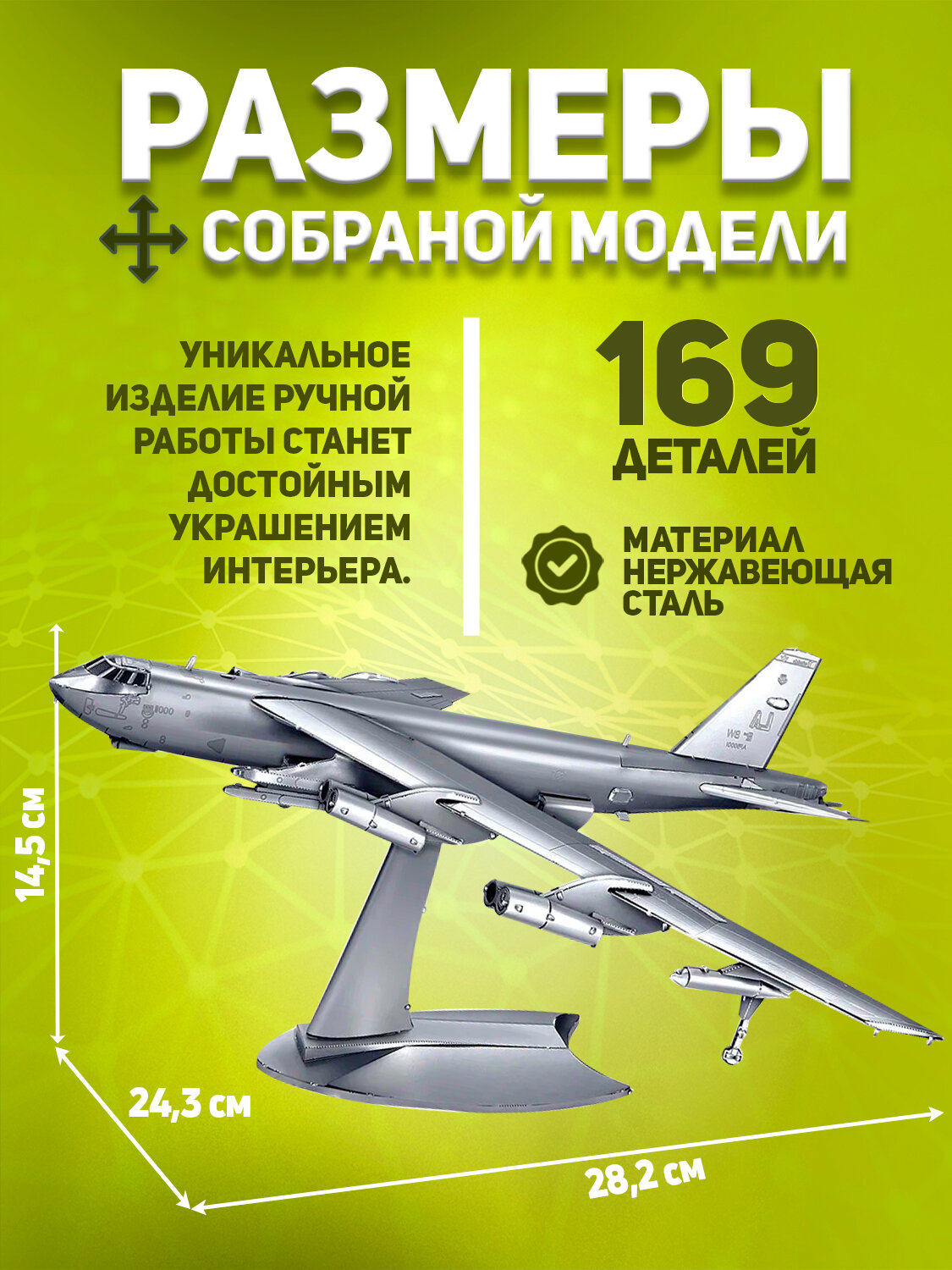 3D-конструктор из металла Воздушное судно Stratofortress - это очень детализированный набор, который подойдет опытным моделистам и коллекционерам.