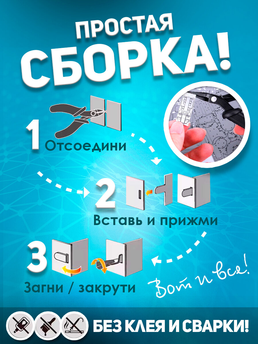 Модель сборная не только функциональна и интересна, но и красиво оформлена! 3D-конструктор из металла отличное решение для подарка. Поистине уникальное изделие ручной работы станет достойным украшением интерьера. Сборка 3D Metal Model - сложная задача, которая может занять более 4 часов, в зависимости от вашей скорости и терпения. Металлический 3D-пазл демонстрирует удивительный уровень точности с оригиналом. Металлические 3D-модели, сборные модели 3Д конструктора - изготовлены из высококачественной нержавеющей стали, и все металлические детали легко скрепляются, при сборке не требуя ни клея, ни пайки.