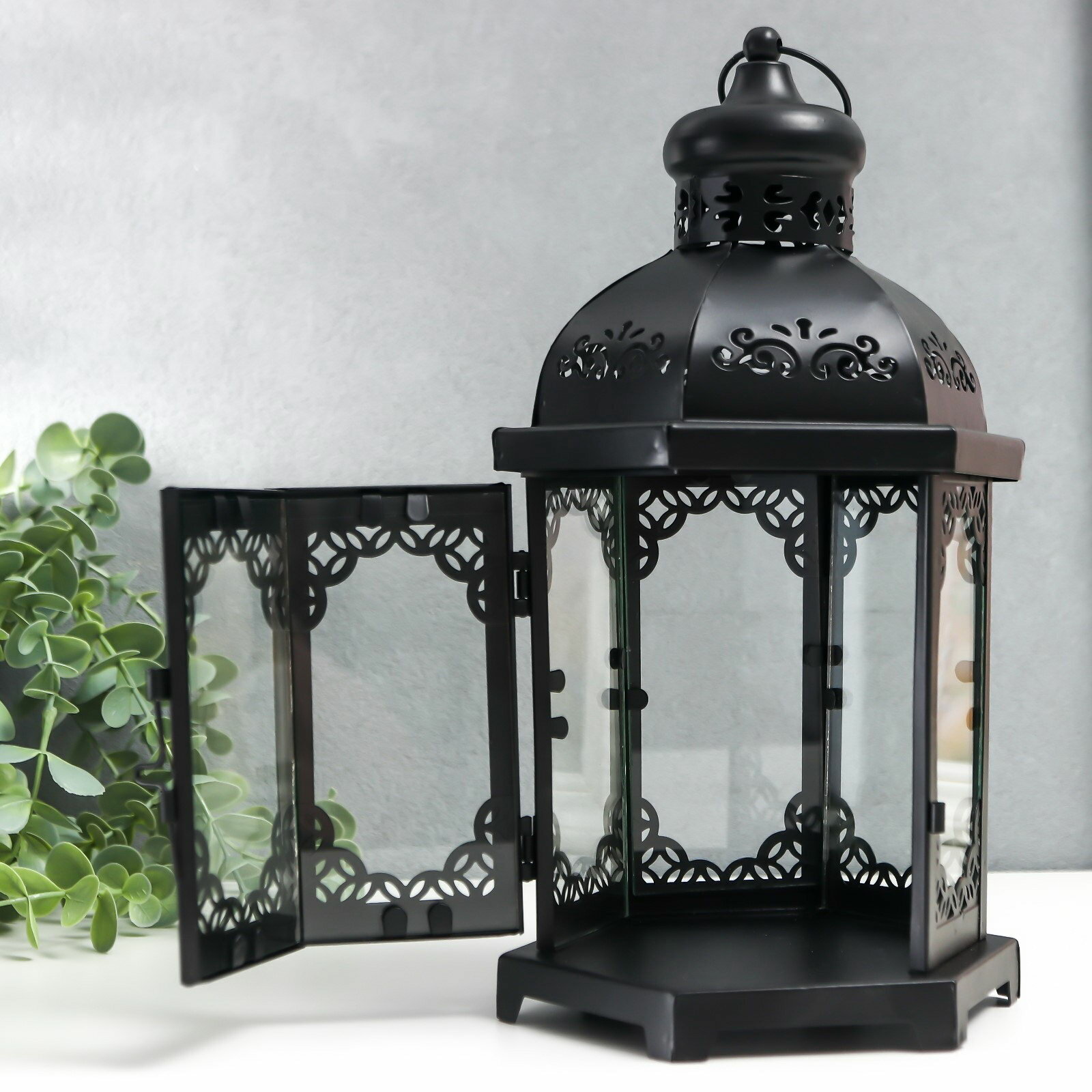 Металлический подсвечник-фонарь на 1 свечу «Цветущие вензеля», стекло, d=10 см, чёрный, 13.5x15x29 см: сравнение цен, характеристики, фото, актуальное наличие и цены.