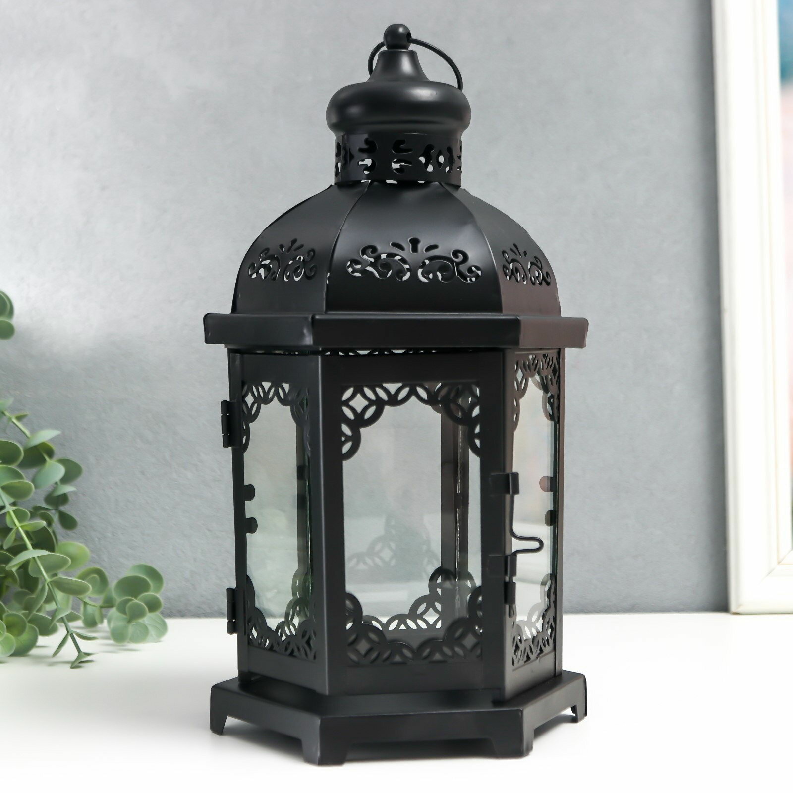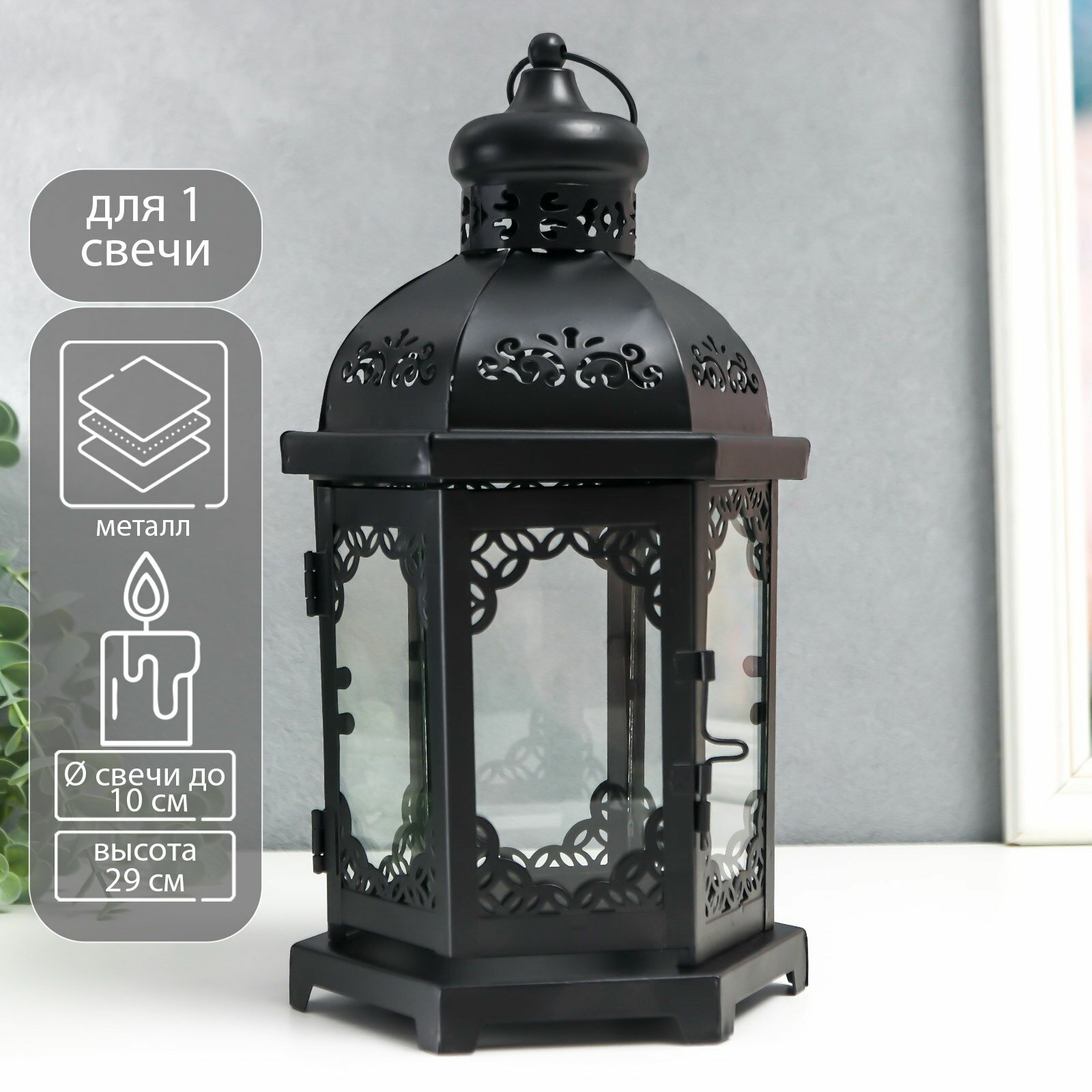 Купить Металлический подсвечник-фонарь на 1 свечу «Цветущие вензеля», стекло, d=10 см, чёрный, 13.5x15x29 см с доставкой по всей России.