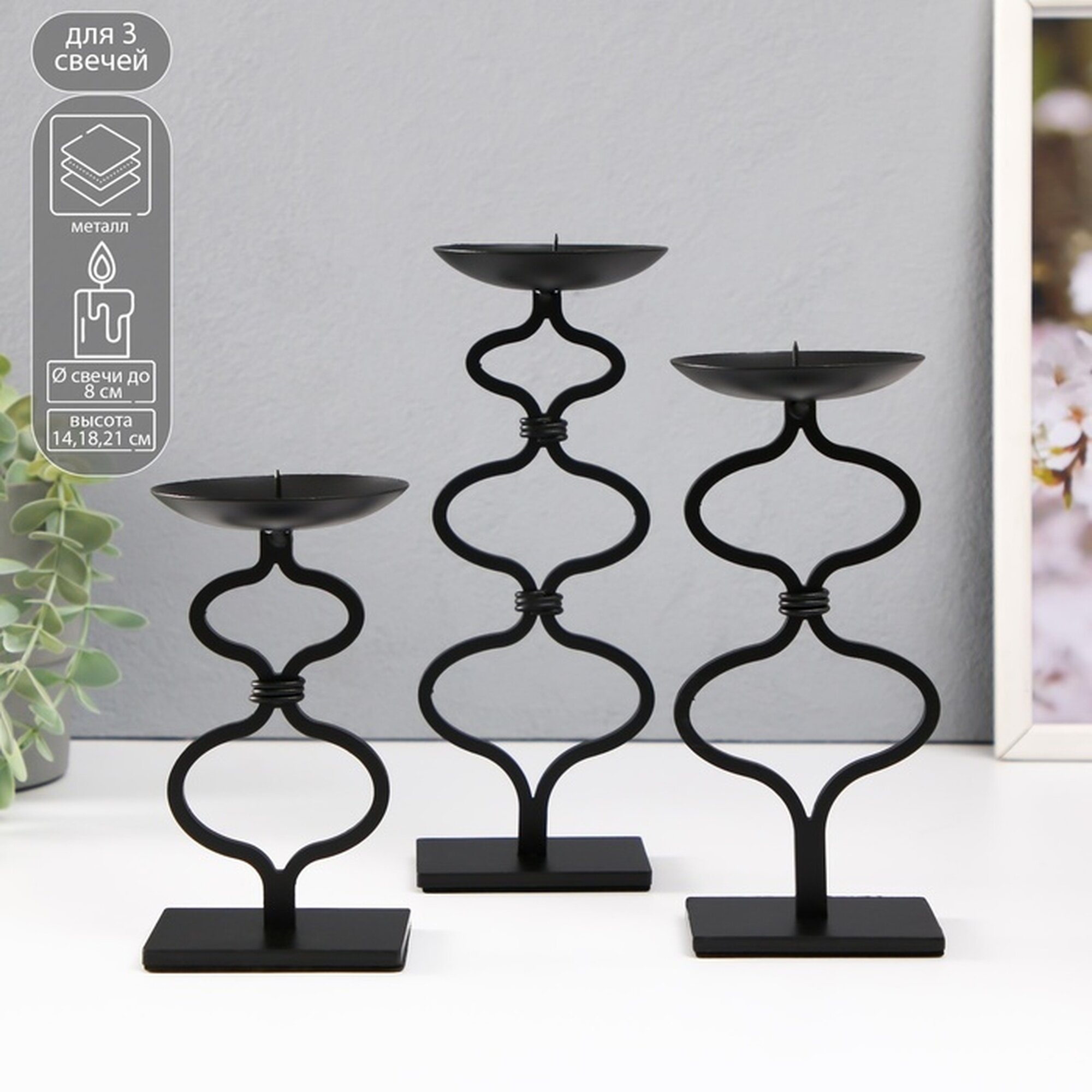 Купить Металлический подсвечник на 1 свечу «Арнкелл», набор 3 шт, d=8 см, 8×8×21.5 18.5 14.5 см с доставкой по всей России.