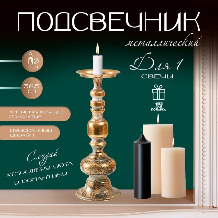 Металлический подсвечник на 1 свечу «Ферро», состаренная бронза, 14.5×14.5×38.5 см: сравнение цен, характеристики, фото, актуальное наличие и цены.