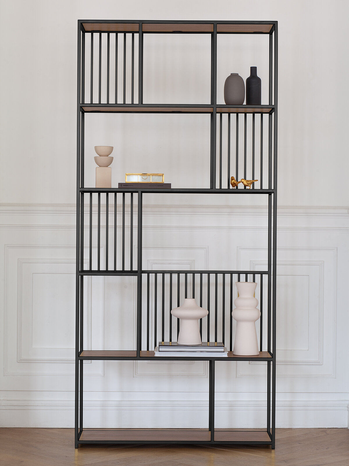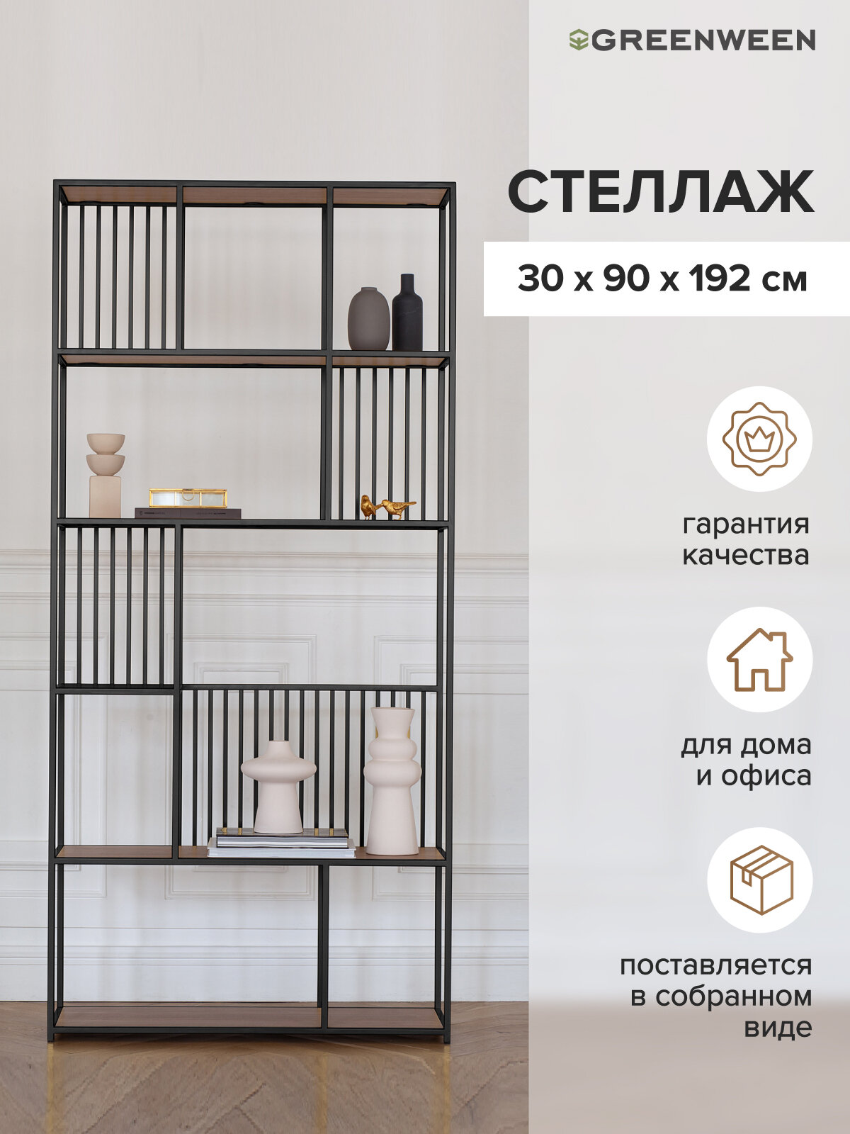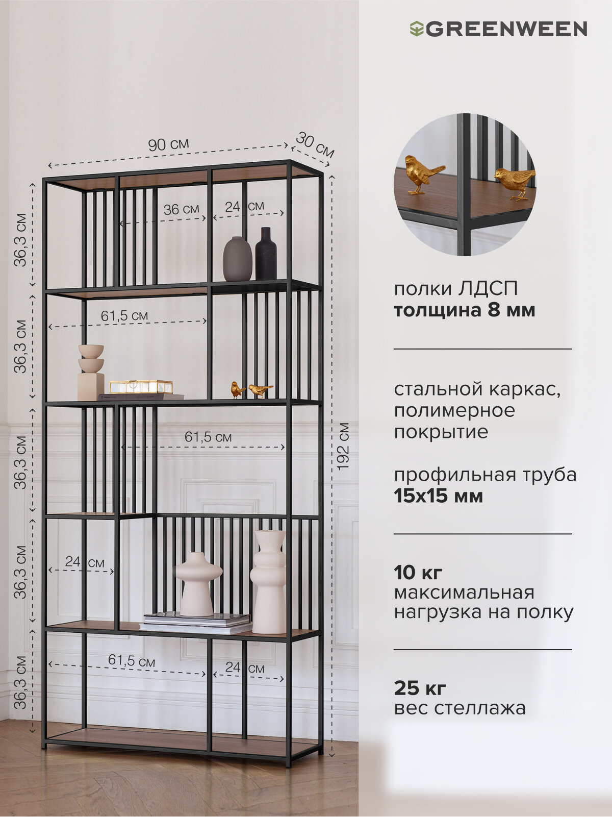 Металлический стеллаж лофт интерьерный для книг SOHO, черный с полками из ЛДСП цвета Робиния: сравнение цен, характеристики, фото, актуальное наличие и цены.