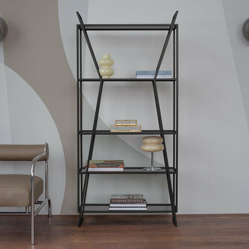 Стеллаж выполнен в элегантном черном цвете, что позволяет ему органично вписаться в любой интерьер. Полки из тонированного стекла придают конструкции легкость и визуальную воздушность, а также обеспечивают надежное и безопасное размещение ваших вещей. Вы можете использовать этот металлический стеллаж не только для книг, но и для экспозиции фотографий, статуэток или других предметов, которые добавят индивидуальности вашему пространству.