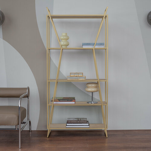 Стеллаж выполнен в золотом цвете, что придаёт ему современный и привлекательный вид. Удобные полки из ЛДСП с текстурой дуба Каселла не только отлично смотрятся, но и обеспечивают достаточную прочность и устойчивость для ваших предметов. Такой дизайн позволяет легко вписать стеллаж в разные стили интерьера, от минимализма до теплого скандинавского оформления.