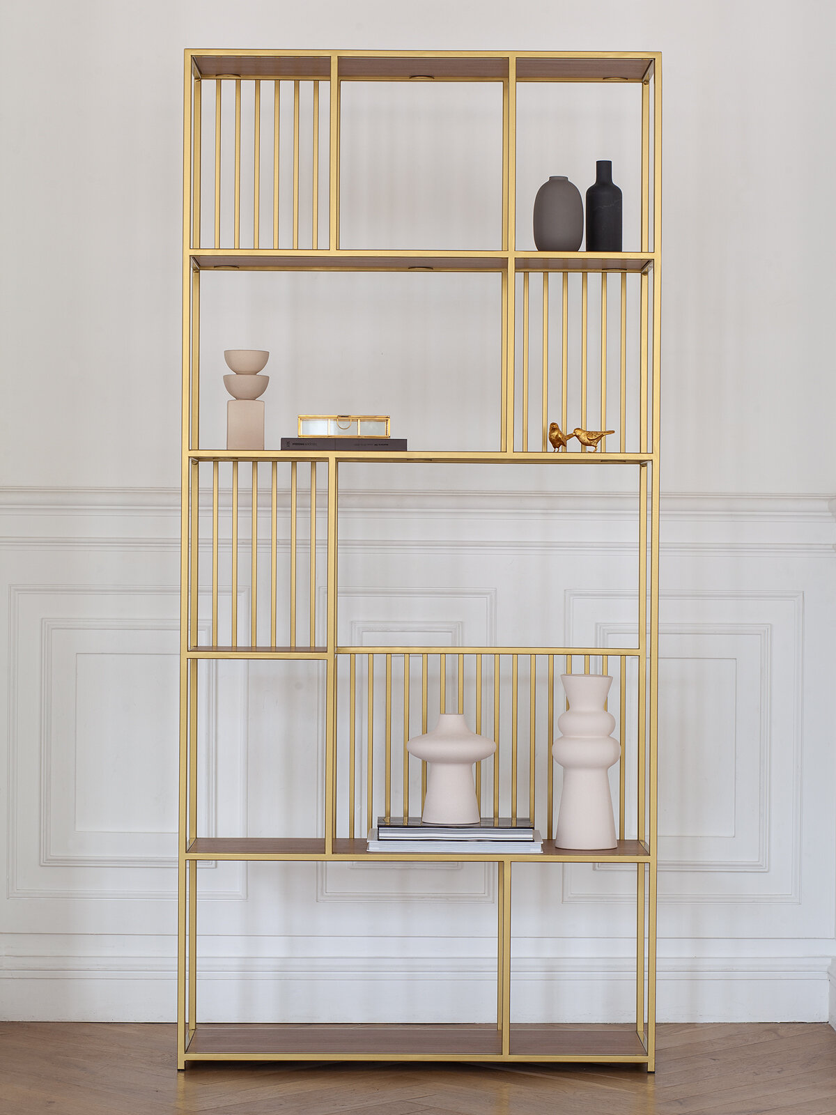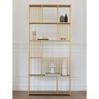 Металлический стеллаж лофт интерьерный для книг SOHO, золотой с полками из ЛДСП цвета Робиния: сравнение цен, характеристики, фото, актуальное наличие и цены.