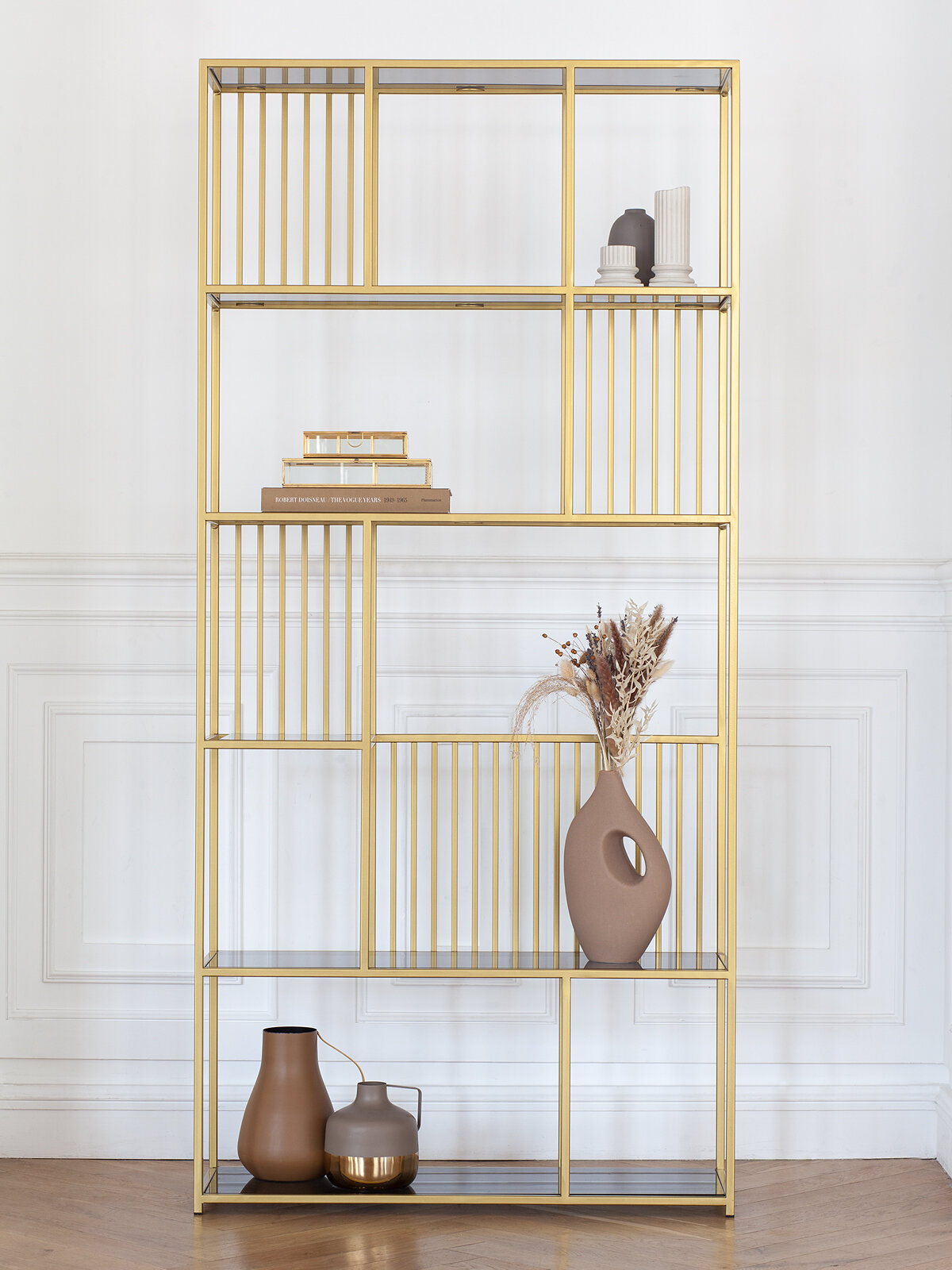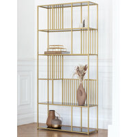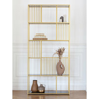 Купить Металлический стеллаж лофт интерьерный для книг SOHO, золотой с полками из стекла с доставкой по всей России.