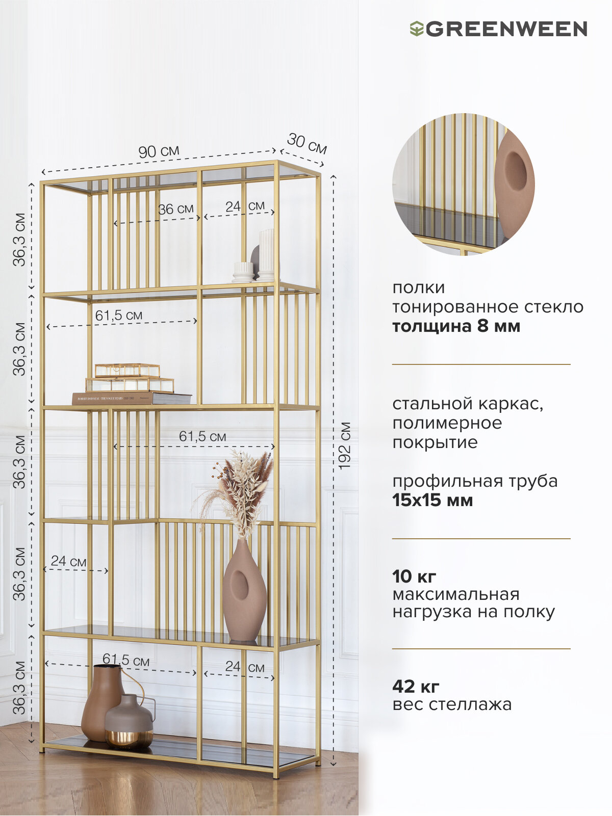 Металлический стеллаж лофт интерьерный для книг SOHO, золотой с полками из стекла: сравнение цен, характеристики, фото, актуальное наличие и цены.