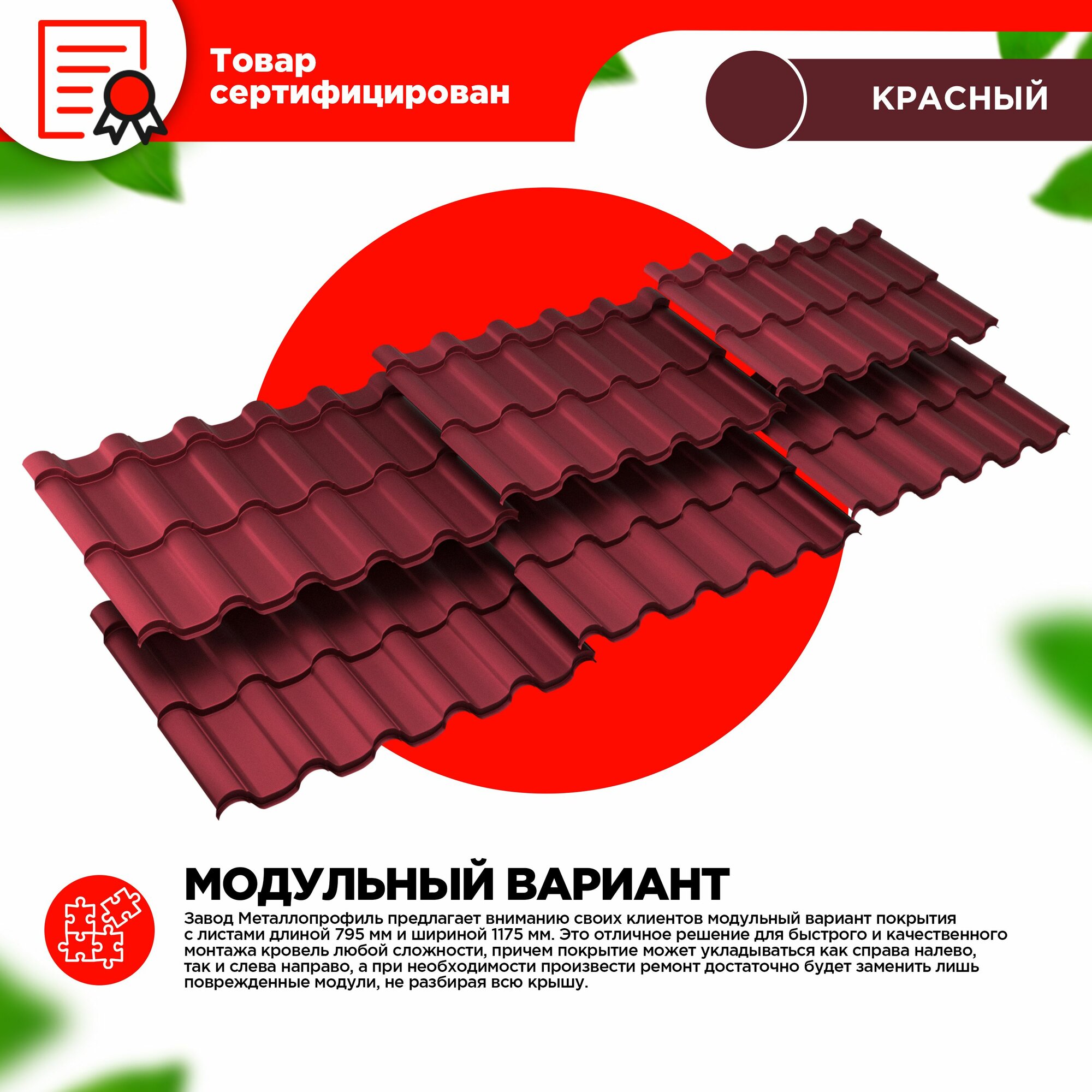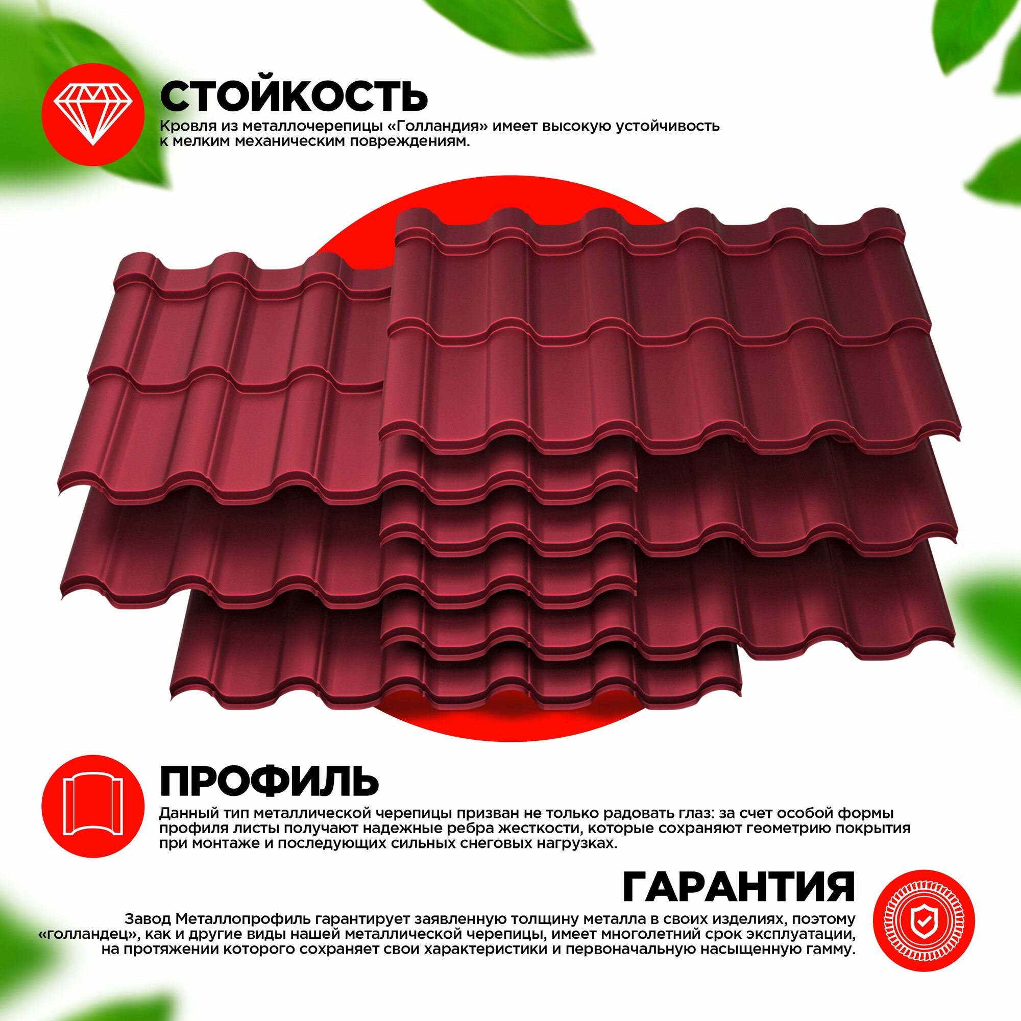 Металлочерепица Голландия модуль 2 волны для кровли крыши RAL 3005 Красное вино 1175х800х0,5мм (5,64 кв. м) — 6 листов: сравнение цен, характеристики, фото, актуальное наличие и цены.