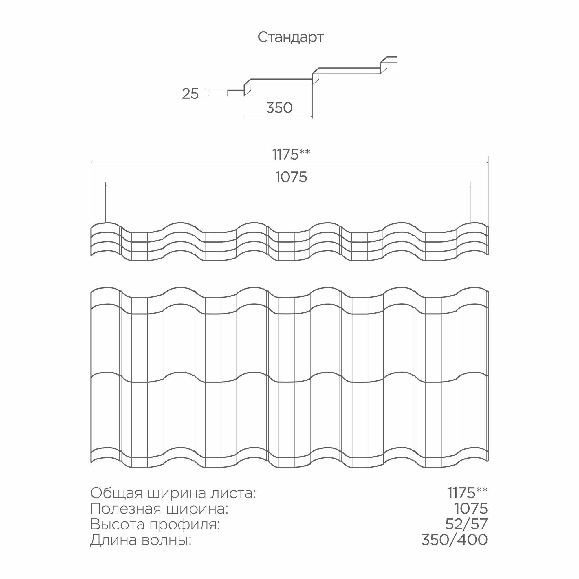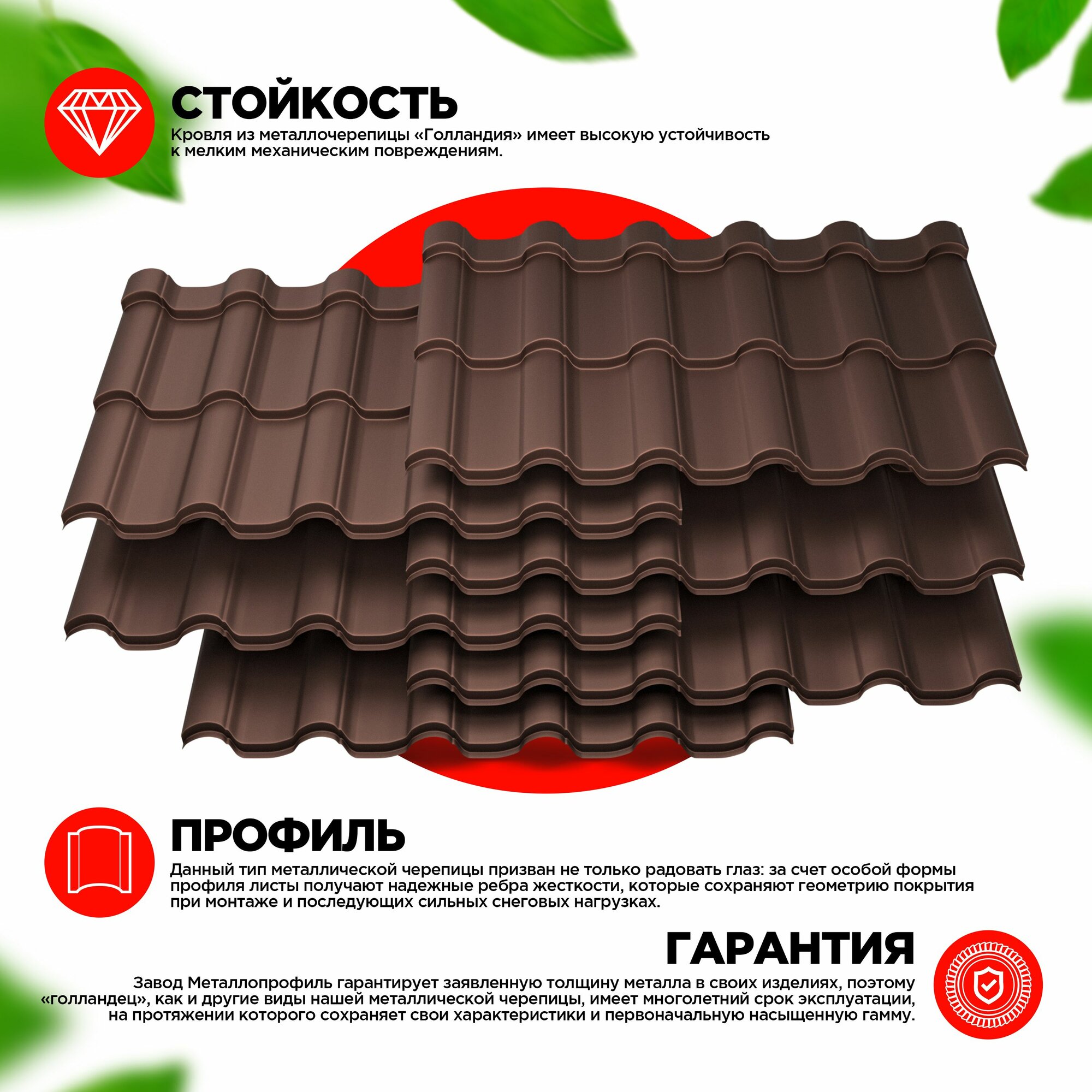 Металлочерепица Голландия модуль 2 волны для кровли крыши RAL 8017 Коричневый Шоколад 1175х800х0,5мм (5,64 кв. м) — 6 листов: сравнение цен, характеристики, фото, актуальное наличие и цены.