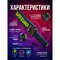 Металлодетектор металлоискатель ручной досмотровый SUPER SCANNER MD-3003B1