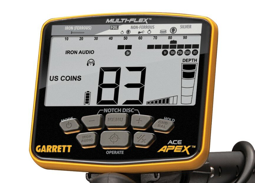Металлоискатель Garrett ACE Apex работает на мультичастоте, самый современный (и востребованный на рынке) копательский тренд. В отличии от Minelab Vanquish, Garrett ACE Apex еще может работать и на одной (на выбор) частоте, как Minelab Equinox. 5 кГц, 10 кГц, 15 кГц, 20 кГц, режимы Multi-Frequency (мультичастота) Multi-Salt (для пляжного поиска).