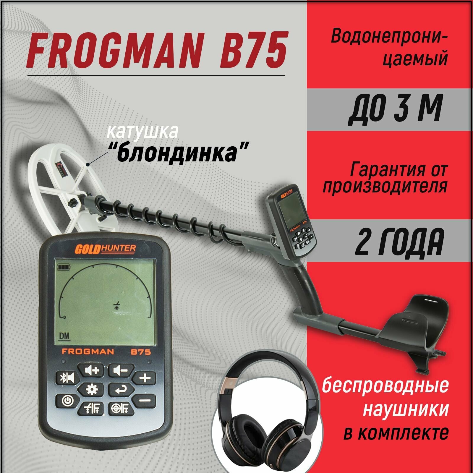 Водонепроницаемый металлоискатель Gold Hunter Frogman B75 с белой DD катушкой 7×11″ и беспроводными наушниками / голд хантер фрогман б75 с блондинкой: сравнение цен, характеристики, фото, актуальное наличие и цены.