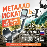 Металлоискатель Gold Hunter N60 это новинка 2023 года от компании Gold Hunter. Прибор является частью линейки Frogman и является водонепроницаемым до 3х метров, что позволяет вести поиск как на суше, так и в воде. N60 использует частоту 12 кГц, благодаря чему отлично показывает себя при поиске монет, золота и ювелирных изделий. Gold Hunter N60 оснащен стандартной 11-дюймовой катушкой Double-D, вибрацией в ручке, фонариком и проводными наушниками.