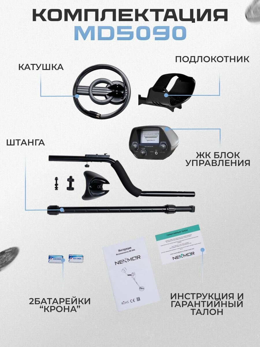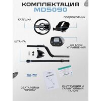 Металлоискатель MD 5090 - это улучшенная версия MD 4030, который является самым популярным, надежным и простым в использовании среди бюджетных металлоискателей. В MD 5090 появилась более чувствительная и мощная катушка, также очень удобный подлокотник c фиксирующим ремнем. Он подходит для поиска любых типов металла (золото, серебро, других цветных и черных металлов). Присутствует удобная регулировка штанги по высоте. Что позволяет настроить длину прибора под рост человека. Прибор очень легкий и удобный в использовании. Катушка с защитой от дождя позволяет заниматься поиском металла даже в плохую погоду. (Блок управления НЕ герметичный)