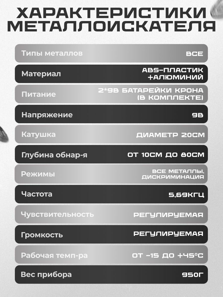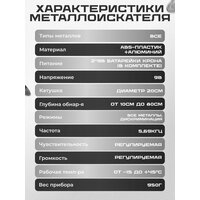 - Глубина обнаружения до 80 см (зависит от размера металла)