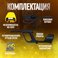 Металлоискатель MD-5090, Батарейки типа "Крона" - 2 шт, Поисковая катушка, Штанга, Комплект крепления , Подлокотник, Руководство пользователя