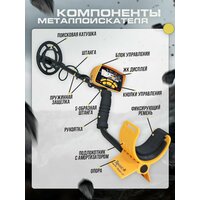 У прибора присутствует индикатор глубины залегания цели, состоит он из трёх значений 2, 4, 6 дюймов. Трёхтональная звуковая индикация, это значит, что прибор может озвучивать различные металлы в трёх разных тонах, имеется индикатор заряда батарей и разъём для подключения наушников, само собой встроенный динамик. Комплектация прибора такова: блок управления на S-образной штанге, две нижних штанги с возможностью регулировки под рост, катушка 6,5х9 дюймов с кабелем, 4 батареи типа АА, комплект документации с инструкцией на русском языке. Металлоискатель представляет собой надёжную, просто не убиваемую машинку, простейшую в освоении и использовании.