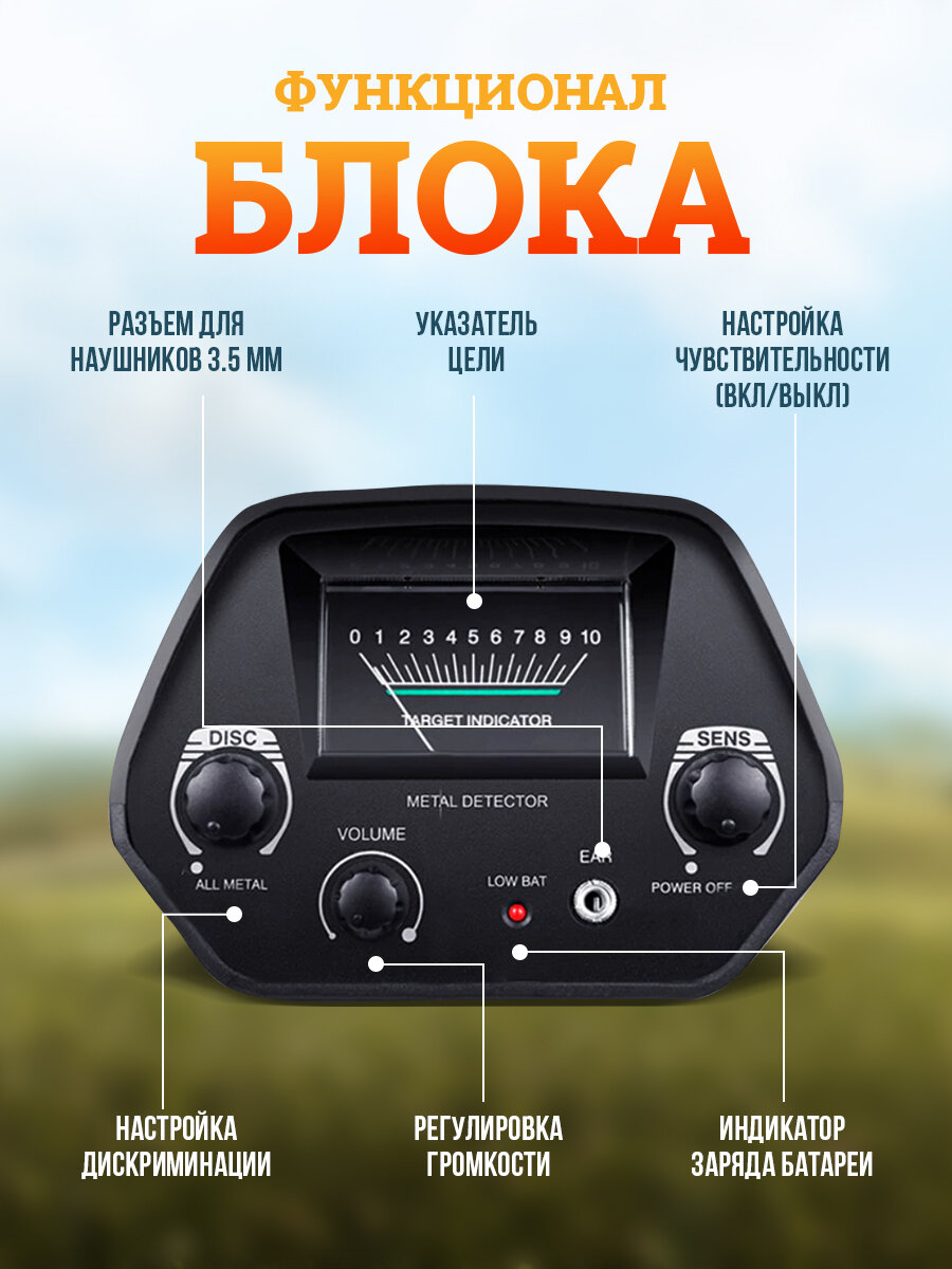 - Глубина обнаружения до 80 см (зависит от размера металла)