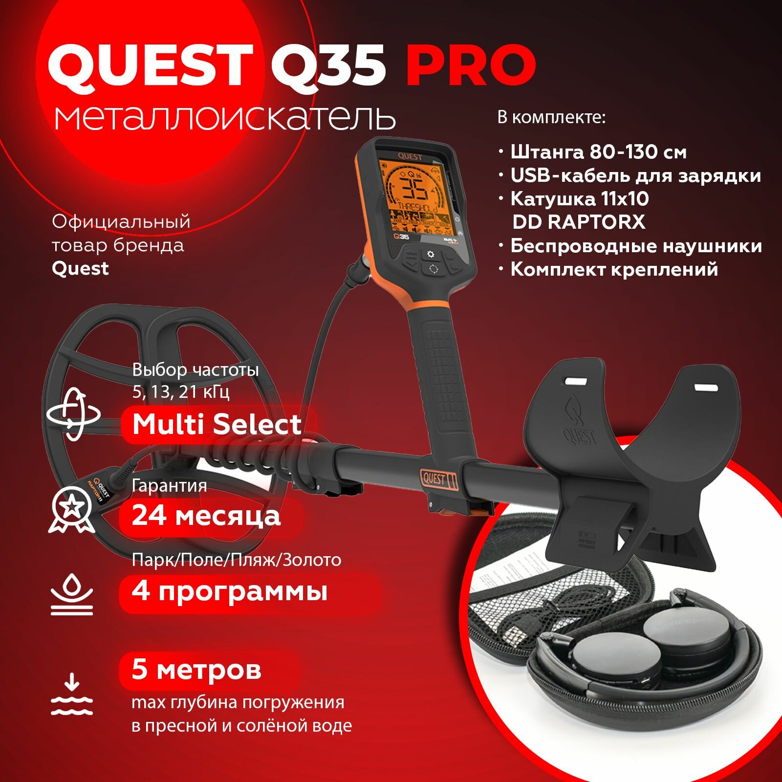 Купить Металлоискатель Quest Q35 / водонепроницаемый металоискатель / металл искатель профессиональный с доставкой по всей России.