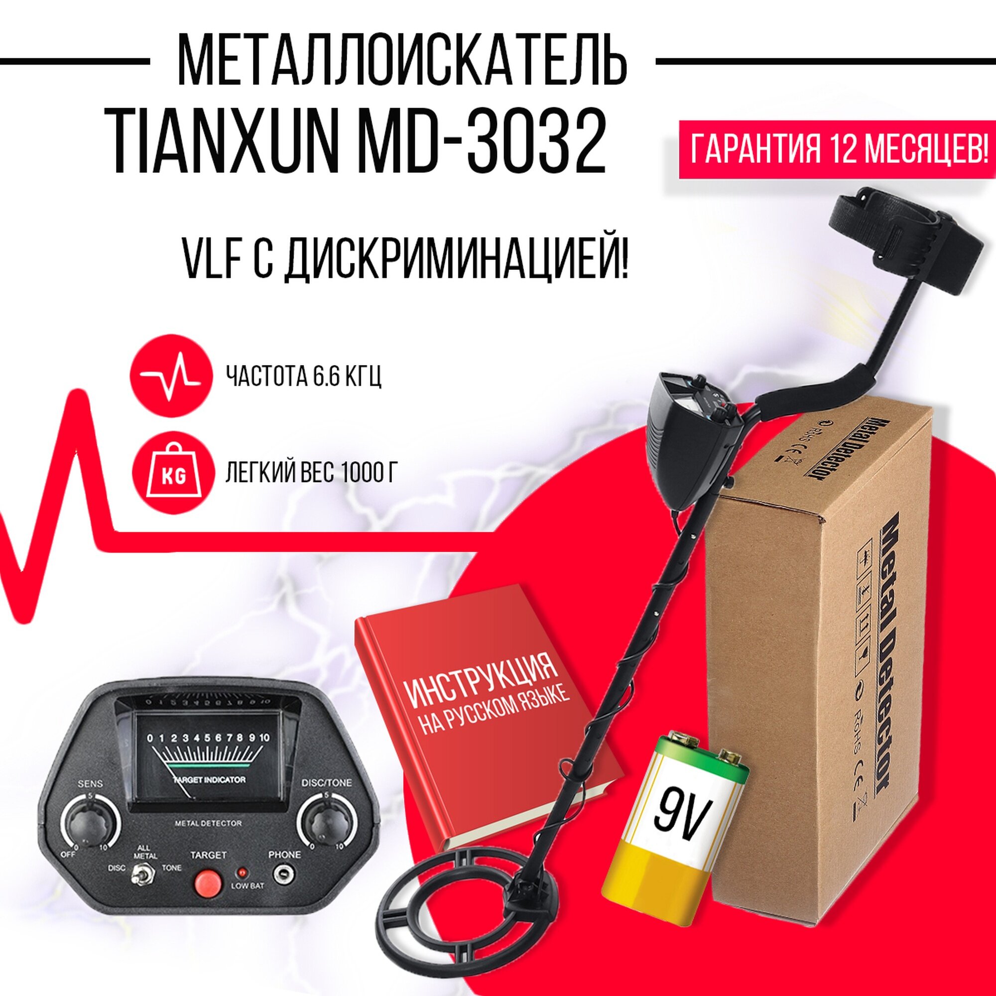 - Регулируемтор обнаружения в виде звукового оповещения и указателя на шкале