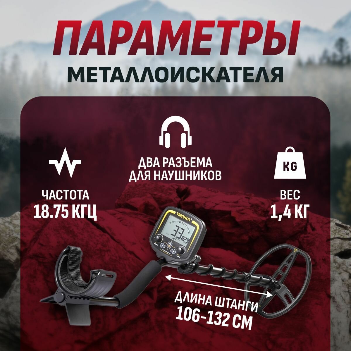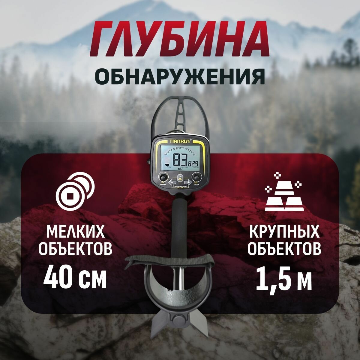 - Система балансировки грунта: Игнорирует природные минералы, фокусируясь только на металлических объектах, что улучшает точность поиска.