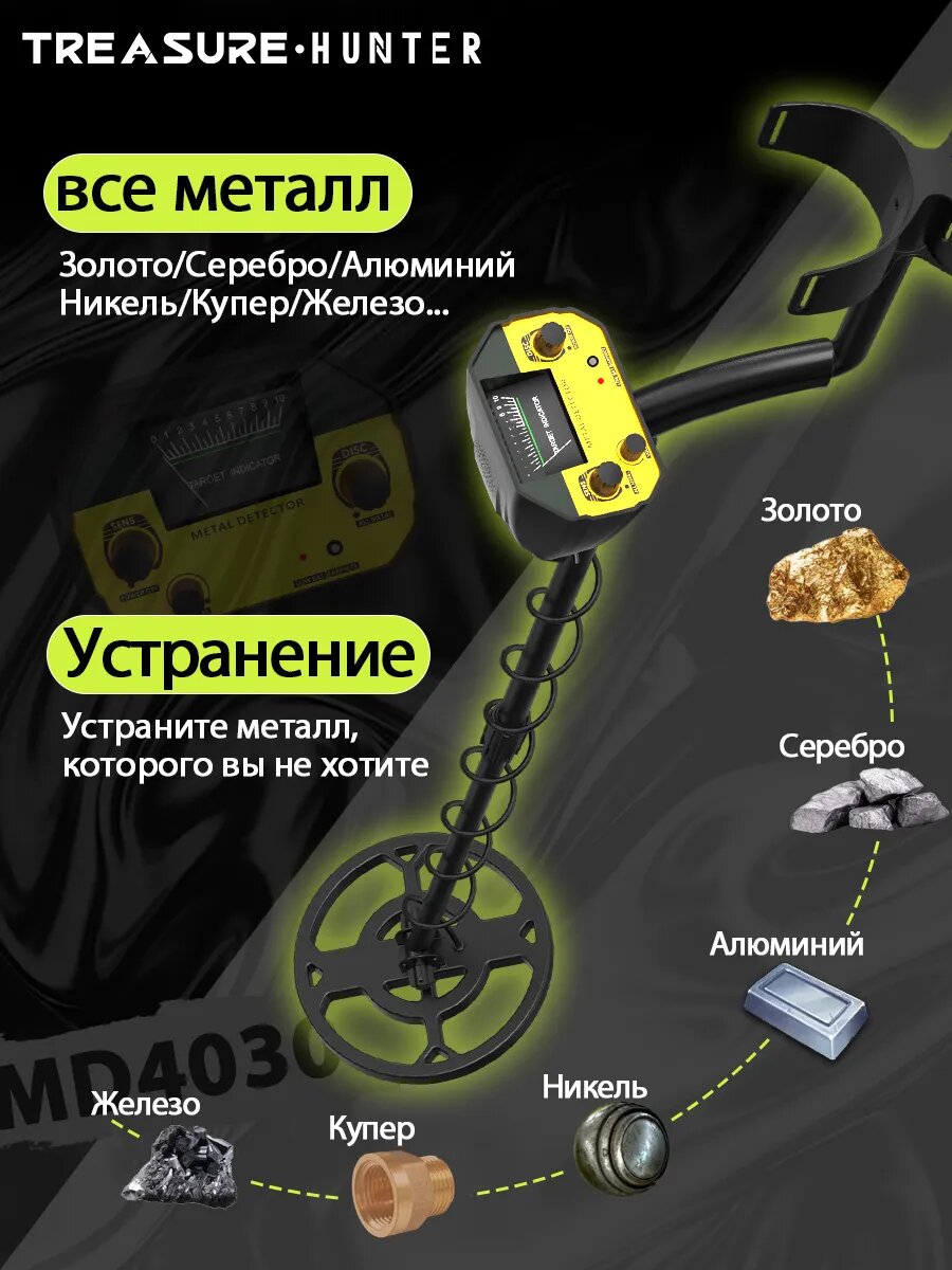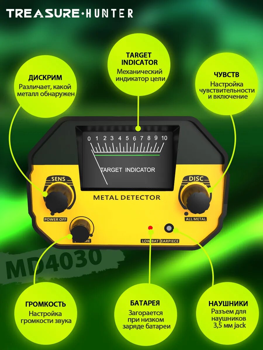 Металлоискатель TREASURE HUNTER MD 4030, грунтовый, 7,8″ катушка, IP68, ЖК-экран,Желтый и черный: сравнение цен, характеристики, фото, актуальное наличие и цены.