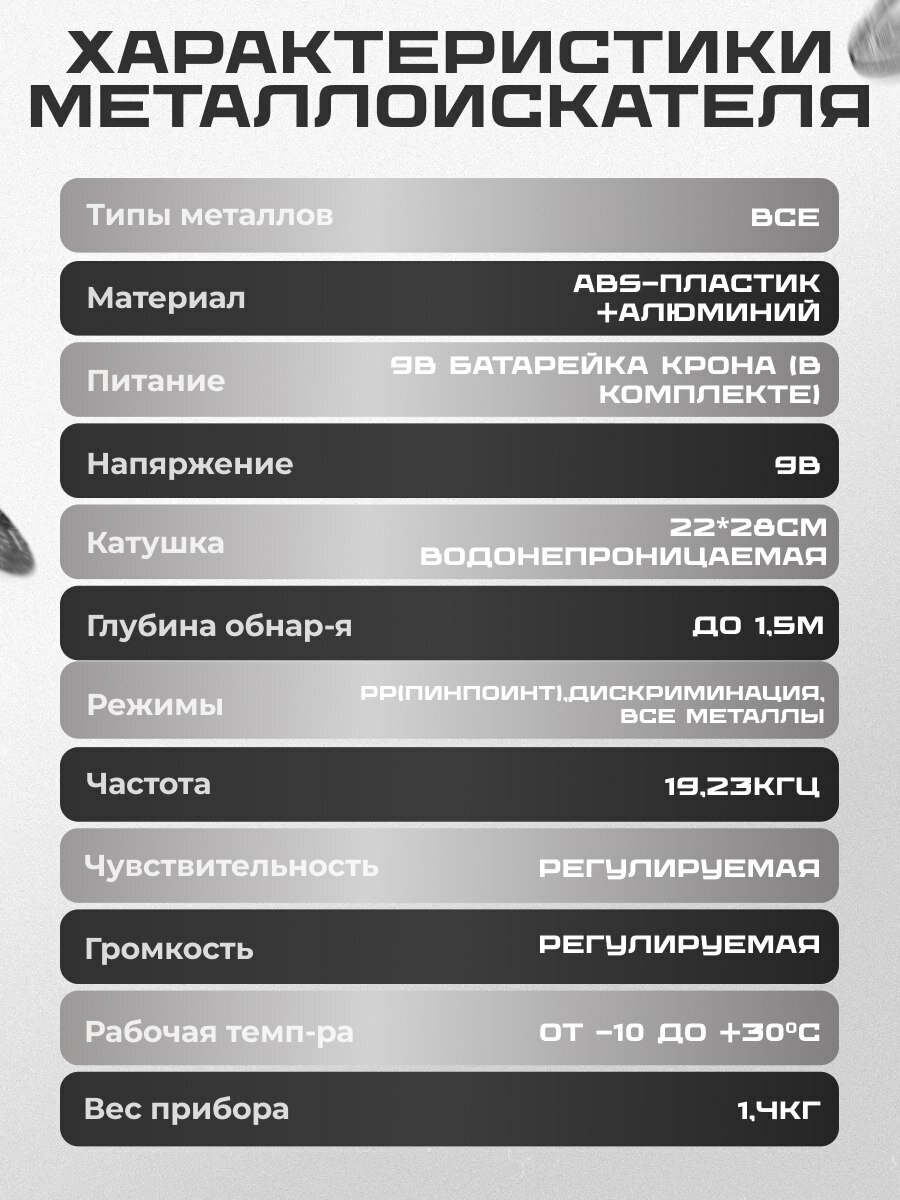 встроенный динамик, дискриминатор, настройка чувствительности, подлокотник, тональная идентификация