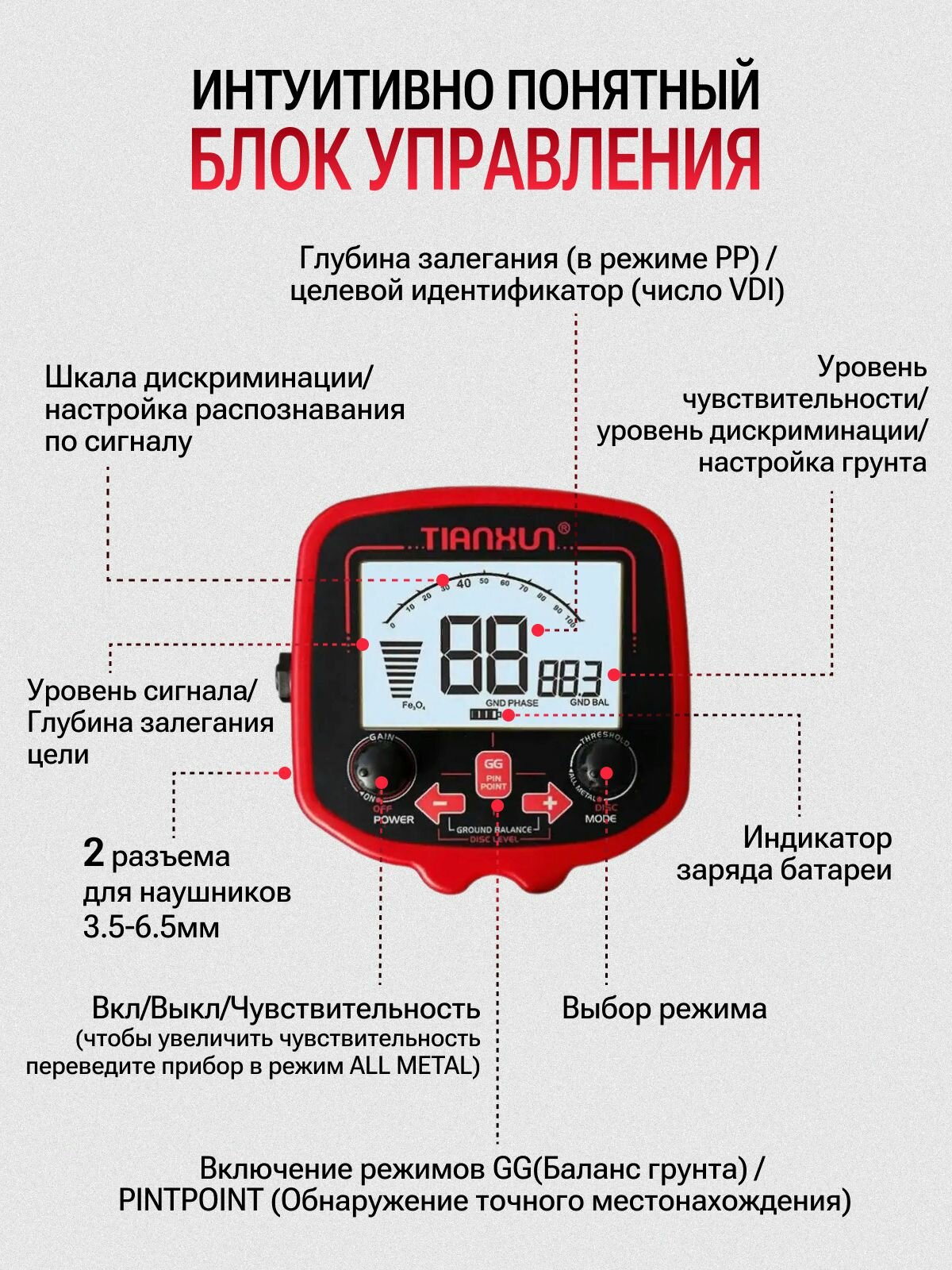 Металлоискатель Tianxun TX-850z является уникальным среди кладоискателей металлодетектором, благодаря сочетанию высокой чувствительности к маленьким целям и универсальности. Блок управления имеет сложную систему балансировки грунта, раздельный контроль усиления и порога сигнала, и уникальную систему контроля дискриминации.