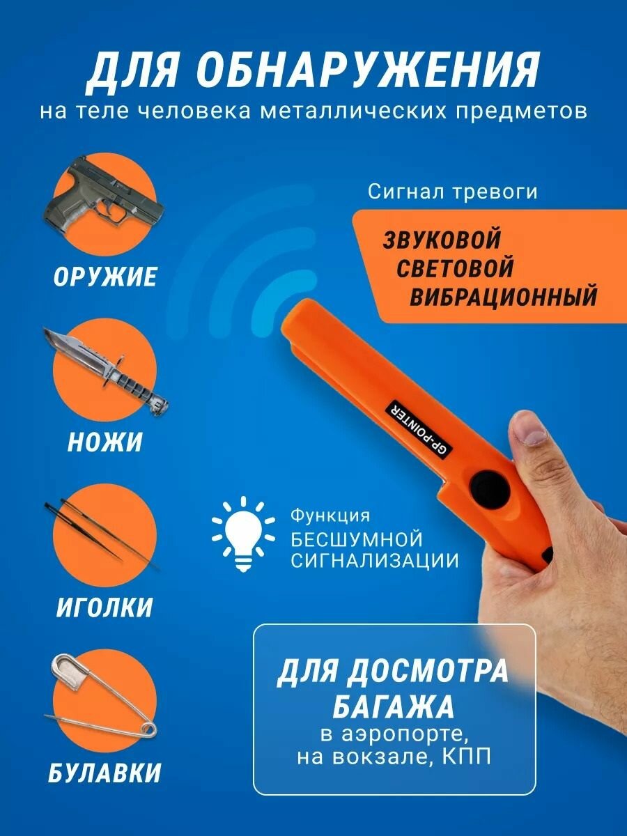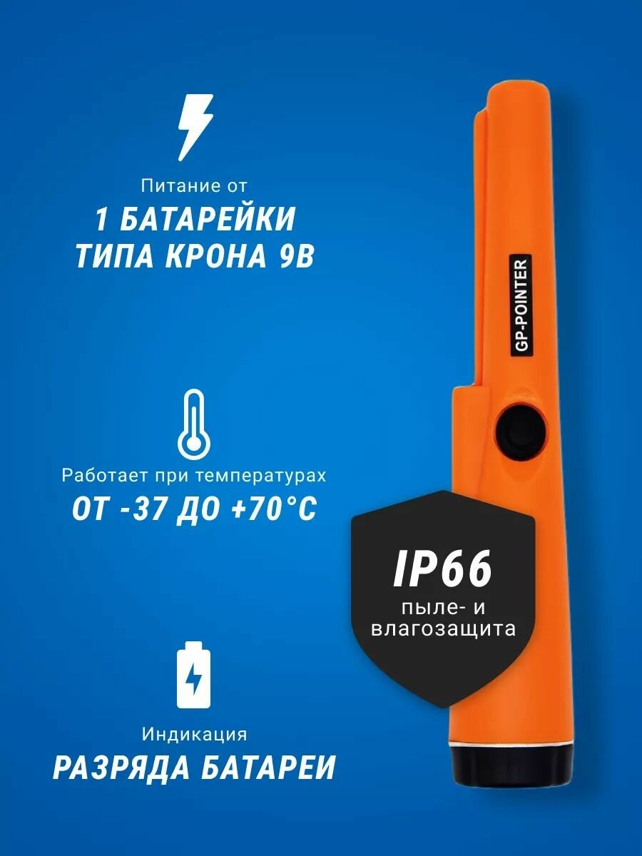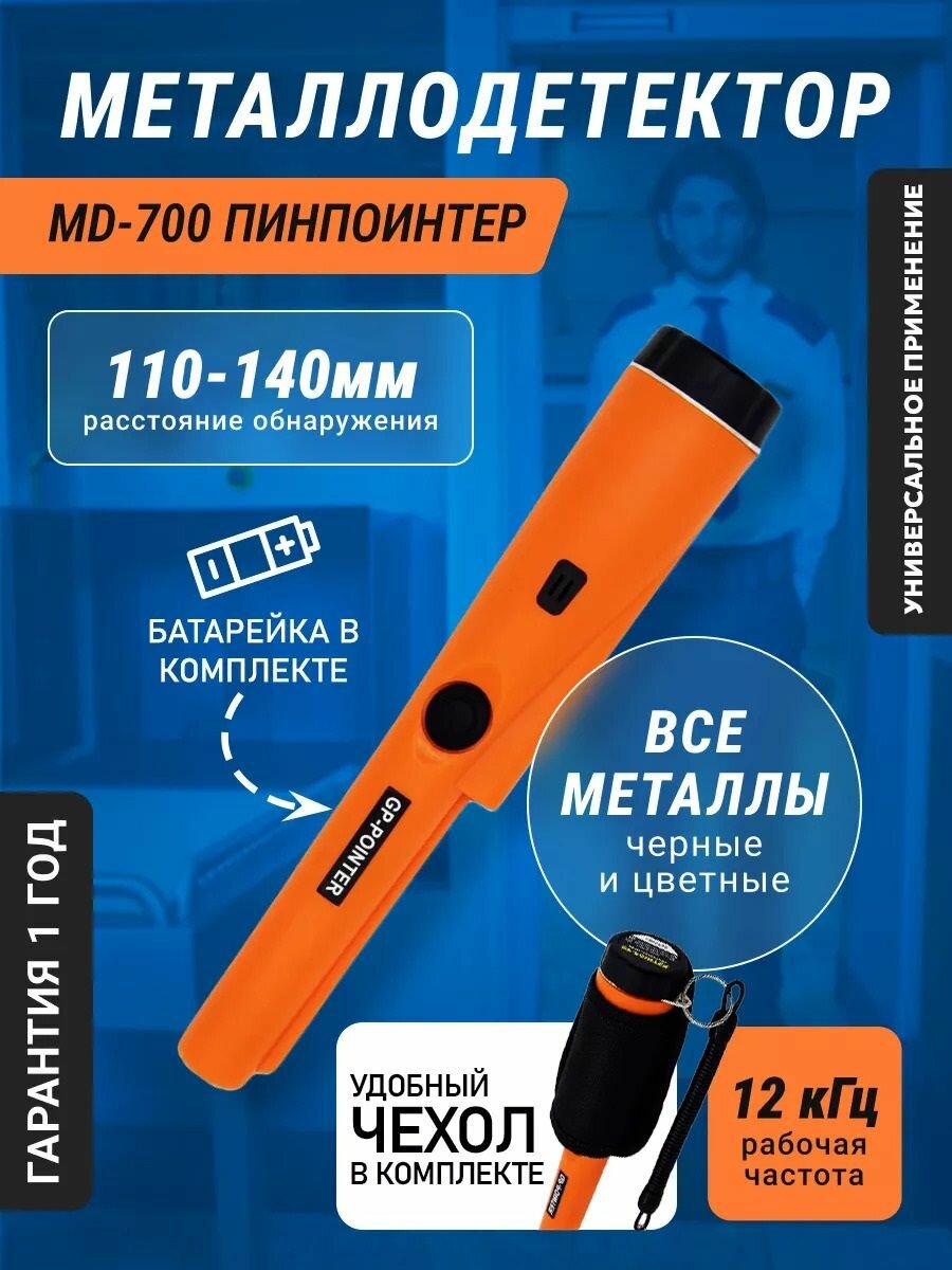 Ручной металлоискатель Пинпоинтер GP-Pointer MD700 предназначен для высокоточного поиска металлических объектов на небольшой площади. Также его можно использовать как металлодетектор в охране для обыска. Этот маленький помощник поможет вам найти клад с детьми, так как он предназначен для поиска всех металлов: золото, серебро, монеты, цепочки, ключи, кольца. Используется как самостоятельно, так и в комплекте с обычным (грунтовым) металлоискателем для более точного поиска цели. Также у металлодетектора имеется фонарик , чехол на ремень, тросик с карабином для удобной переноски и использования. Батарейка Крона в комплекте.