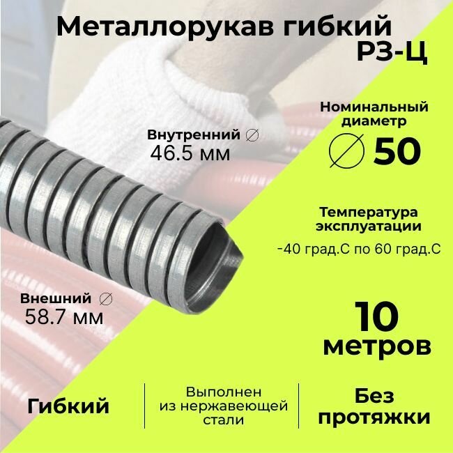 Металлорукав для кабеля оцинкованный Р3 — Ц — 50 D50мм серый — 10м: сравнение цен, характеристики, фото, актуальное наличие и цены.