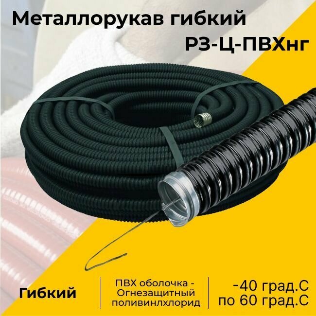 Металлорукав для кабеля оцинкованный в ПВХ изоляции РЗ-Ц-ПВХнг-22 D22мм с протяжкой черный -20м: сравнение цен, характеристики, фото, актуальное наличие и цены.