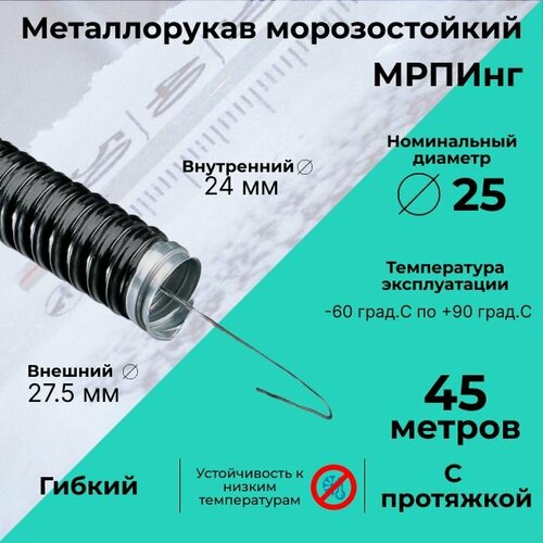 Металлорукав морозостойкий в ПВХ изоляции мрпинг d25мм с протяжкой черный — 45м: сравнение цен, характеристики, фото, актуальное наличие и цены.