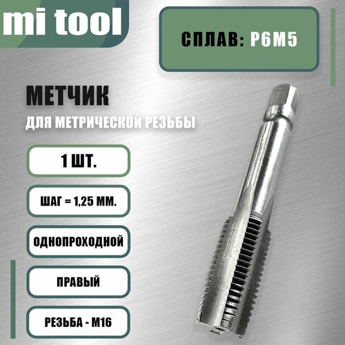 Метчик машинно-ручной М16х1,25 - это инструмент, предназначенный для нарезания внутренней метрической резьбы с диаметром 16 мм и шагом 1,25 мм в глухих и сквозных отверстиях. Метчик может использоваться как на металлорежущих станках, так и вручную.