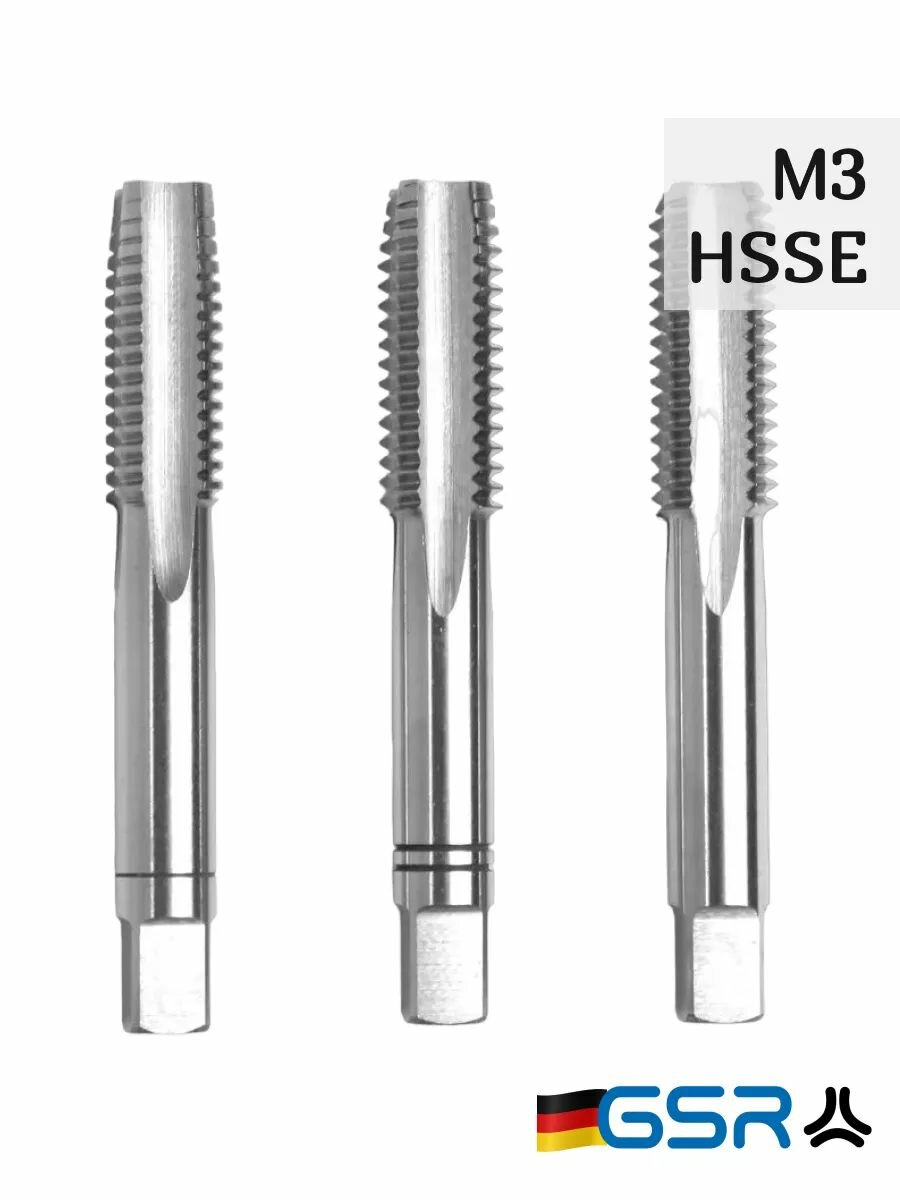 Купить Метчики ручные для нарезания резьбы по металлу HSSE DIN 352 6H M 3 набор (3 шт) для глухих и сквозных отверстий 00107130 GSR (Германия) с доставкой по всей России.