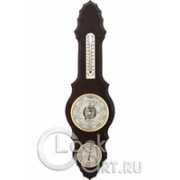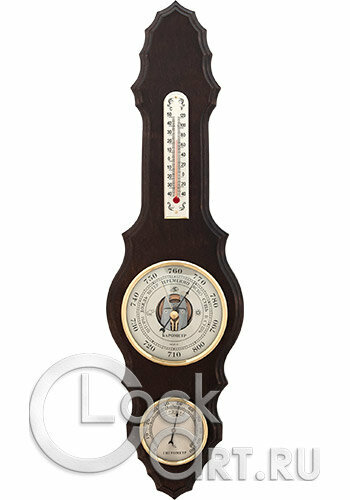 Настенную метеостанцию можно разместить в гостиной, холле или рабочем кабинете. Основа станции выполнена из массива дерева и покрыта лаком. Силуэт имеет изящную изогнутую форму, а каждый прибор выделен изгибами основания и обведен золотистой оправой. Высота метеостанции составляет 52 см, показания приборов хорошо читаются на расстоянии.