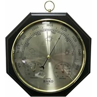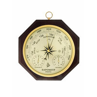 Метеостанция для дома и дачи Бриг КМ91411ТГБ-В. Эта погодная станция измеряет температуру, атмосферное давление и относительную влажность окружающего воздуха в помещении. Выполнена из массива благородной древесины бука в цвете венге , позволяющем сочетать ее с любым интерьером. Очень полезный подарок метеозависимым людям. Установленные приборы: барометр анероид, измеряемое давление от 720 до 800 мм. рт. ст.(960-1070 гПа). Термометр-диапазон измерения температуры от - 25 до +50 С. Гигрометр -диапазон измерения относительной влажности в помещении: 100 % rH. Размеры: механизм барометр ф130 мм со встроенным гигрометром и термометром, корпус (многогранник, массив бука, цвет - венге, подвес - латунь.