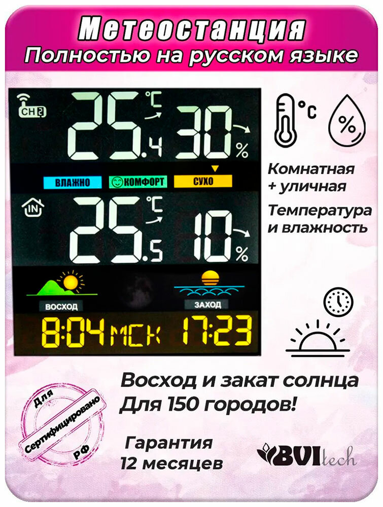 Купить Метеостанция BVItech BV-676, черная, с беспроводным датчиком с доставкой по всей России. Метеостанция BVItech BV-676, черная, с беспроводным датчиком: сравнение цен, характеристики, фото, актуальное наличие и цены.