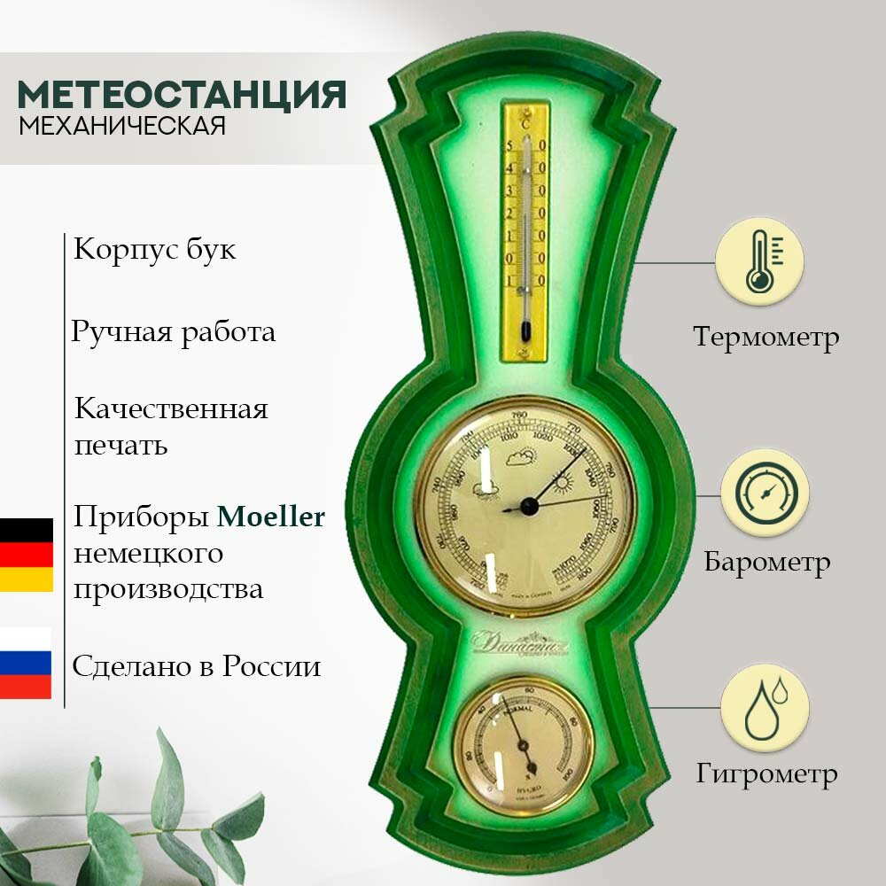 Метеостанция (Германия, Россия) из дерева (бук) 10-805 зеленый настенная механическая, для дома, размер 39*16 см: сравнение цен, характеристики, фото, актуальное наличие и цены.