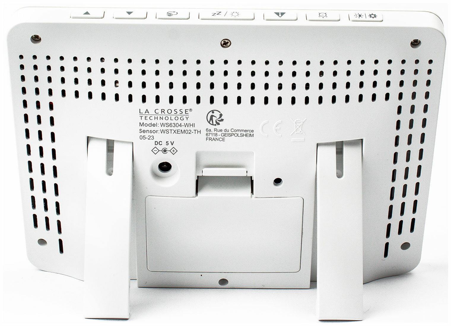Кнопки управления четкие, понятные и расположены в удобном месте на верхнем торце погодной станции. La Crosse WS6304 создан для того, чтобы быть нужным и полезным для вашей комфортной жизни