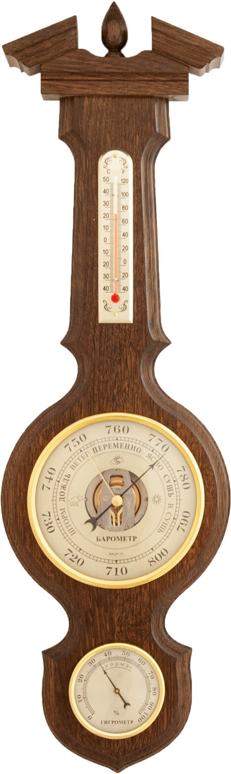 Корпус изготовлен из качественной древесины, достаточно прочной, чтобы долгие годы защищать устройства термометра, гигрометра и барометра. Больше не возникнет потребности в том, чтобы барометр, термометр или гигрометр бытовой купить. Все уже есть!
