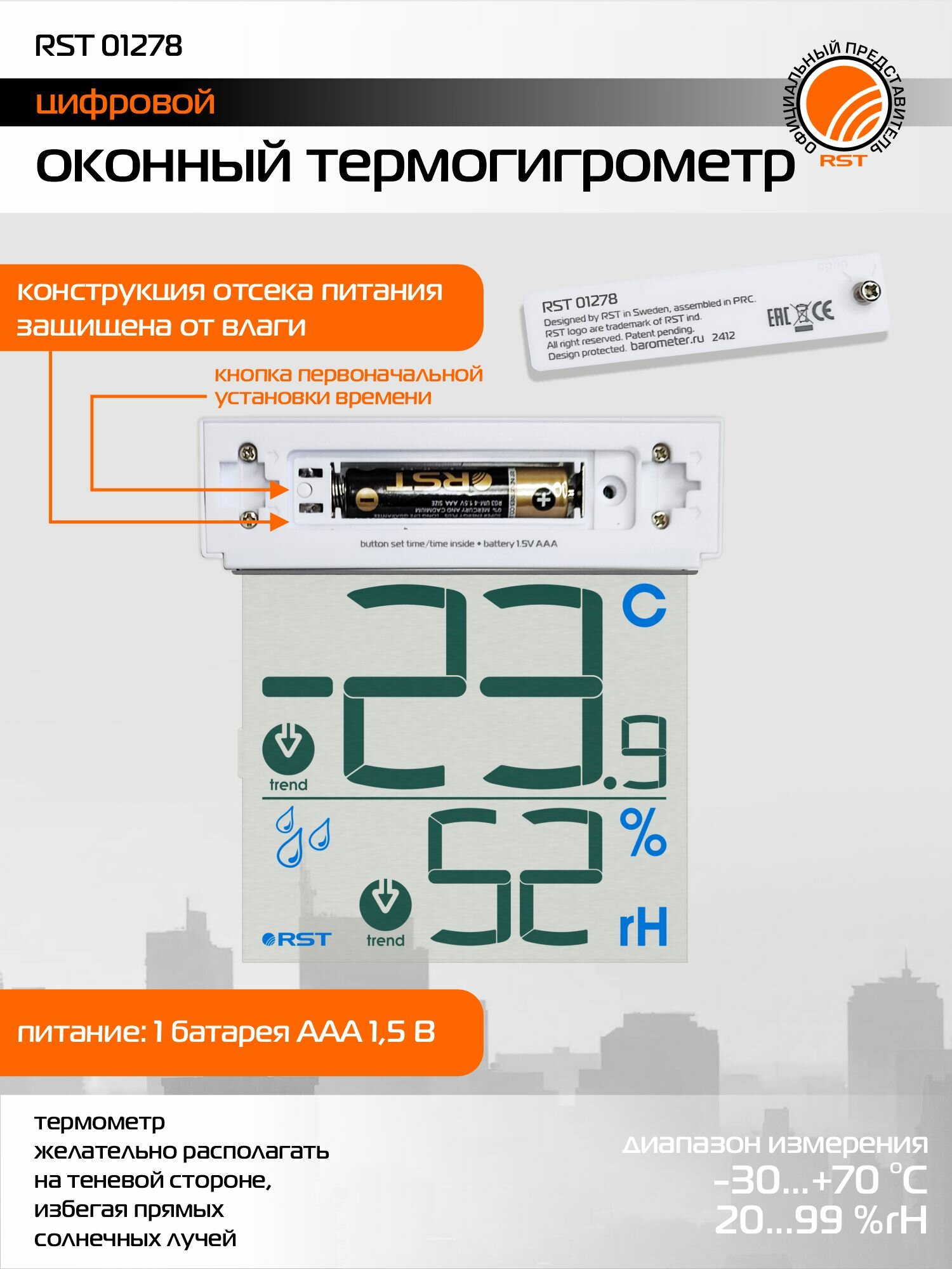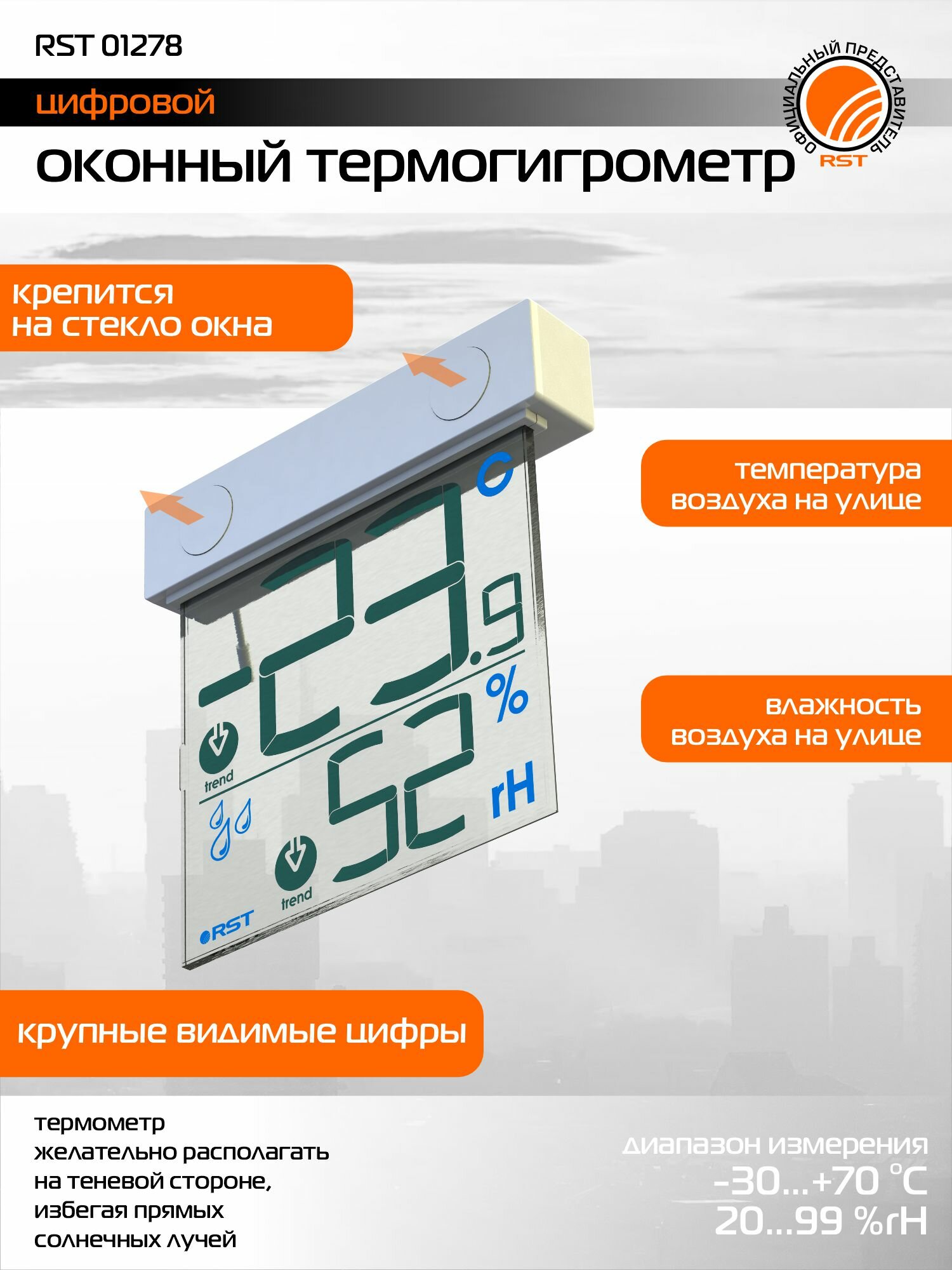 Купить Метеостанция RST 01278, для измерения температуры и влажности, с индикацией уровня заряда с доставкой по всей России. Метеостанция RST 01278, для измерения температуры и влажности, с индикацией уровня заряда: сравнение цен, характеристики, фото, актуальное наличие и цены.