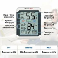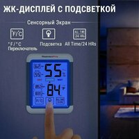 Цифровой комнатный термометр и гигрометр ThermoPro TP55 с большим сенсорным экраном и подсветкой для контроля температуры и влажности