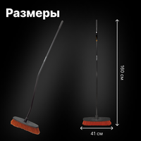 Ворс метлы изготовлен из полипропилена, который не впитывает воду и другие жидкости. Это делает метлу особенно удобной для уборки на улице.