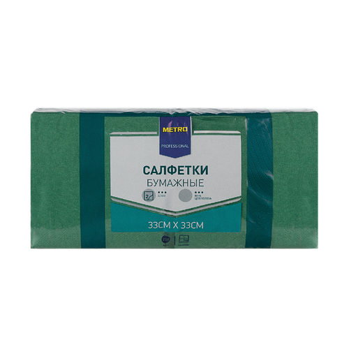 METRO PROFESSIONAL Салфетки бумажные двуслойные зеленые 250шт, 33×33см: сравнение цен, характеристики, фото, актуальное наличие и цены.