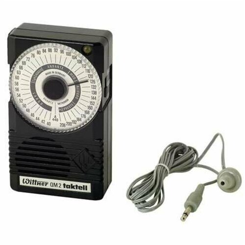 Метроном WITTNER Taktell Quarz QM 2 861161Электронный метроном/камертонДиапазон скоростей: 40 - 208 уд / минУдар дисплей через динамик и светодиодПереключатель для оптической и акустической индикациейПогрешность: + / - 0,02%Настройка: 440 ГцРазмеры: 106 x 61 x 28 ммC наушниками и 9В батареи Цвет: черный Наличие наушников, делает удобным использование этого метронома для гитары
