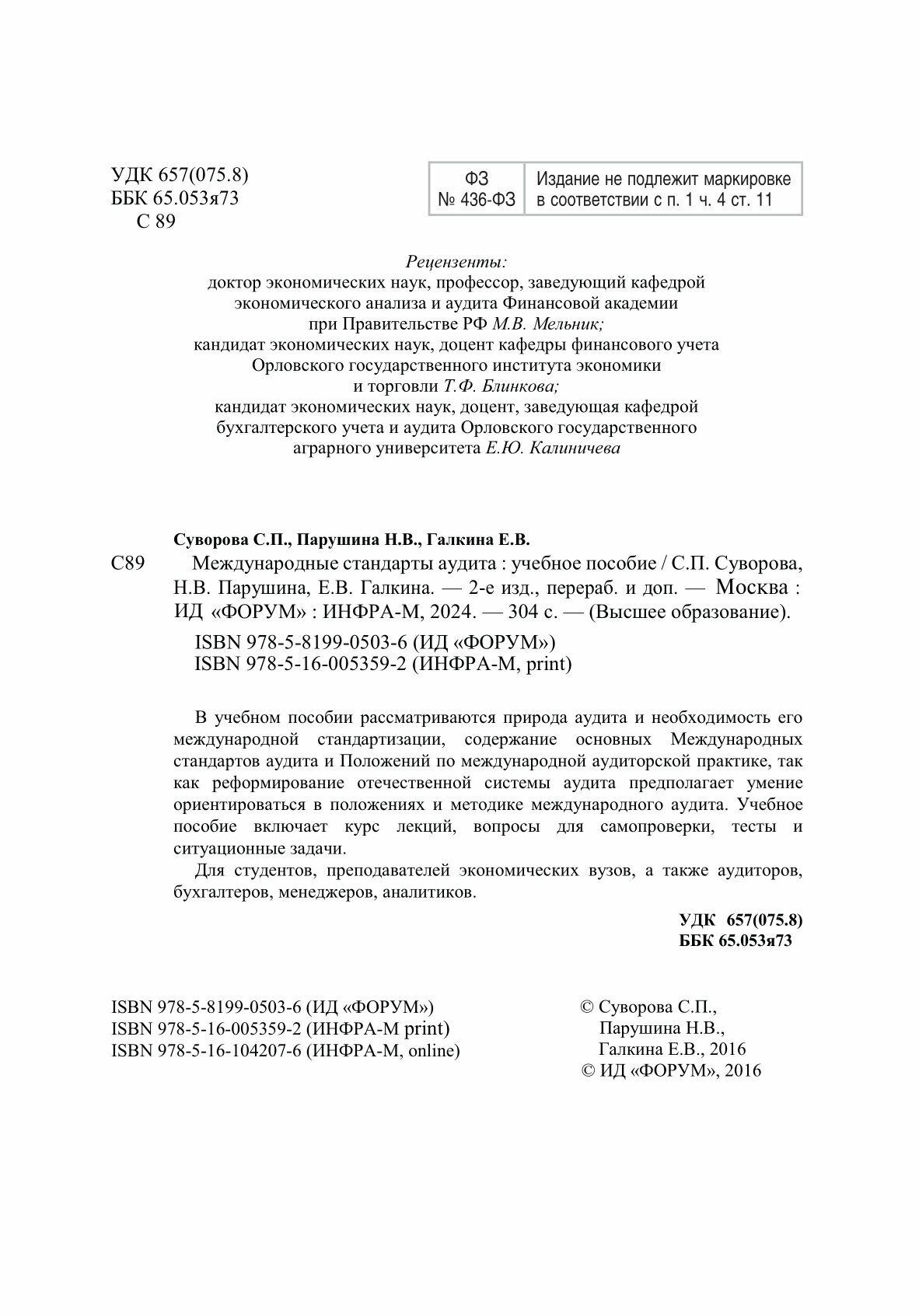 Международные стандарты аудита: Уч. пос./Суворова С. П, Парушина Н. В, Галкина Е. В, — 2-е изд.-М: ИД Форум,2025.-304 с.: сравнение цен, характеристики, фото, актуальное наличие и цены.