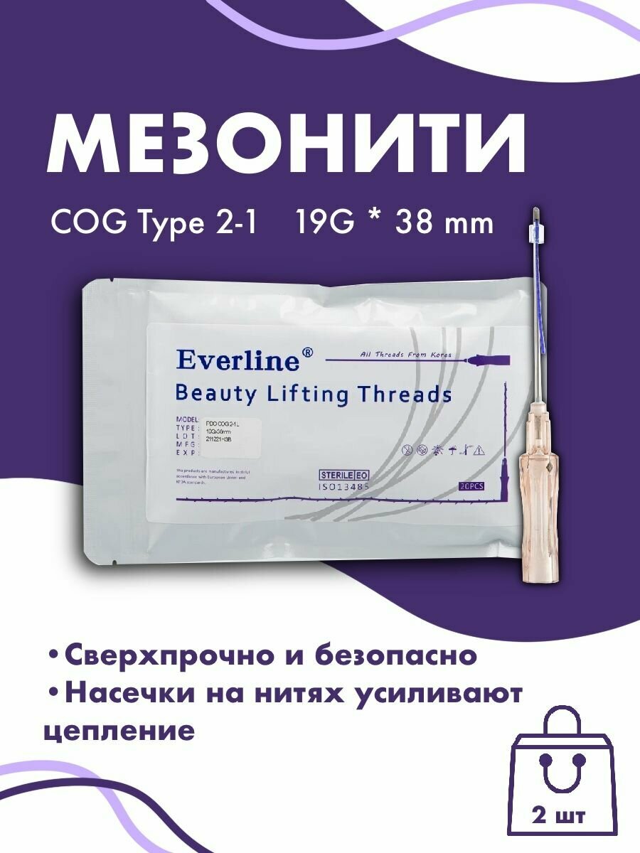 Корейские мезонити PDO COG 2-1L (нити коги) – это специальные игольчатые нити, на которые нанесены разнонаправленные насечки.