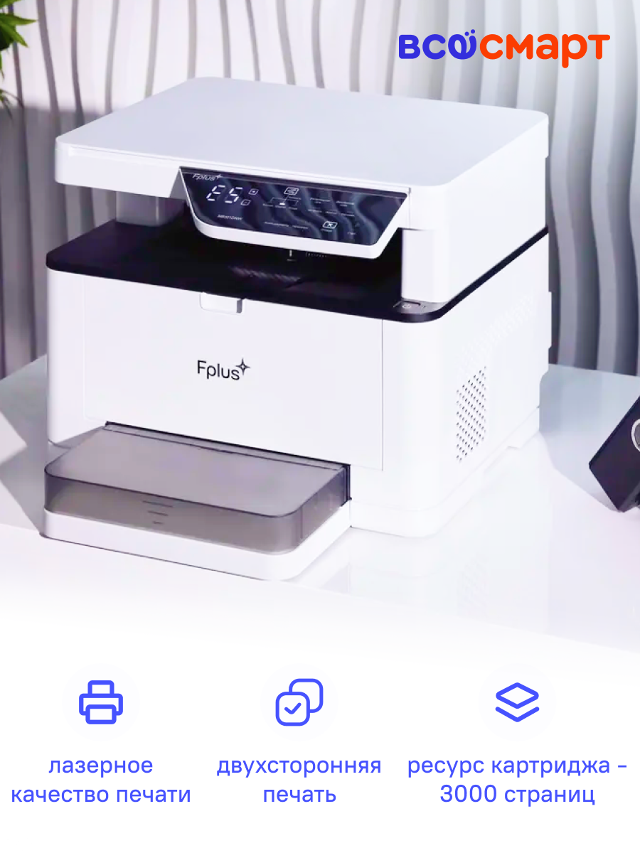 Купить МФУ Fplus лазерное монохромное MB301DNW с Wi-Fi, 65000 страниц, черно-белая печать с доставкой по всей России.