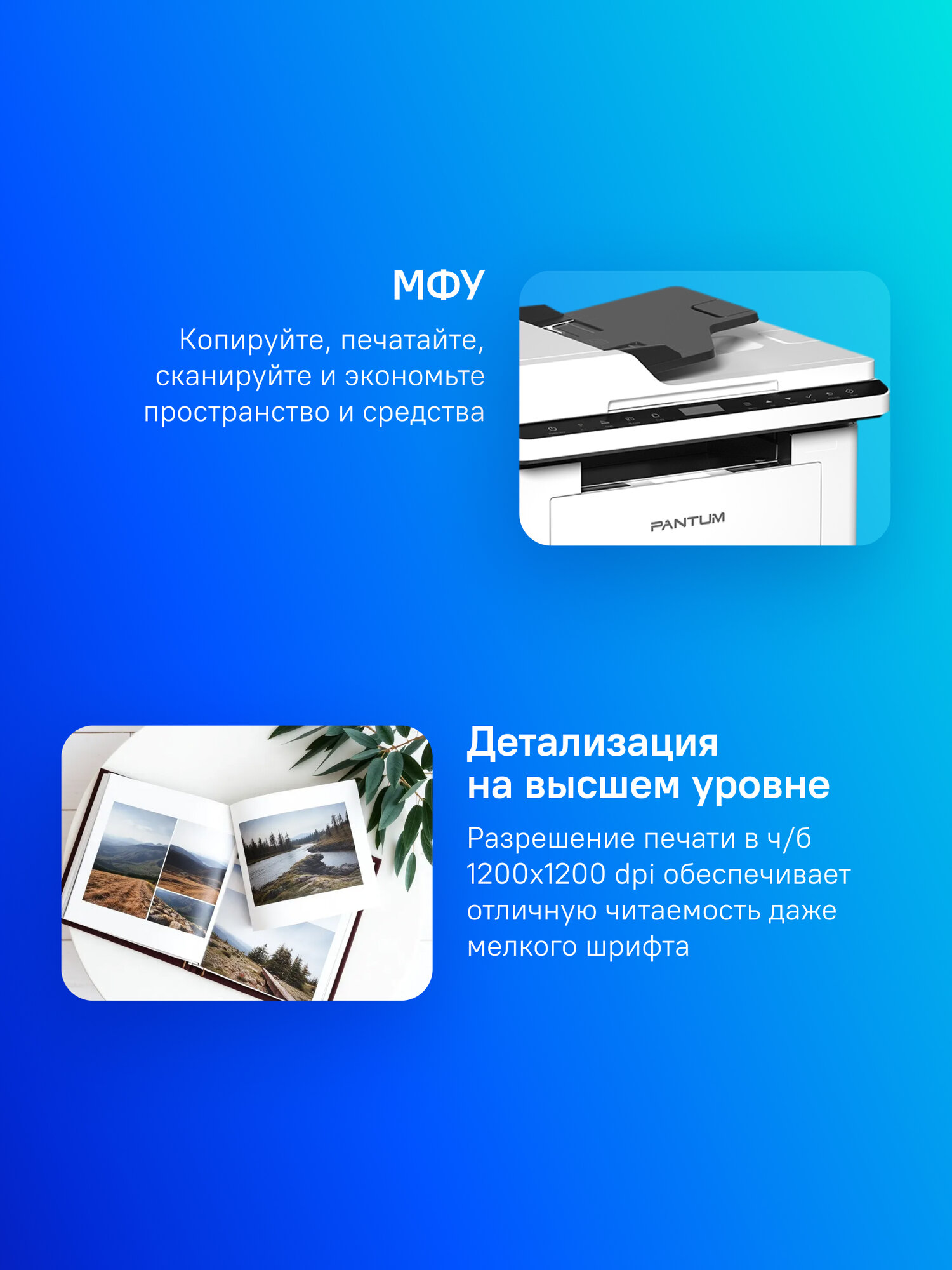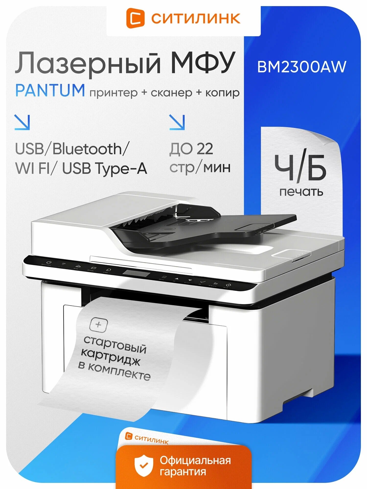 Купить МФУ лазерный Pantum BM2300 A4 белый с Wi-Fi AirPrint Bluetooth планшетный сканер ADF с доставкой по всей России.